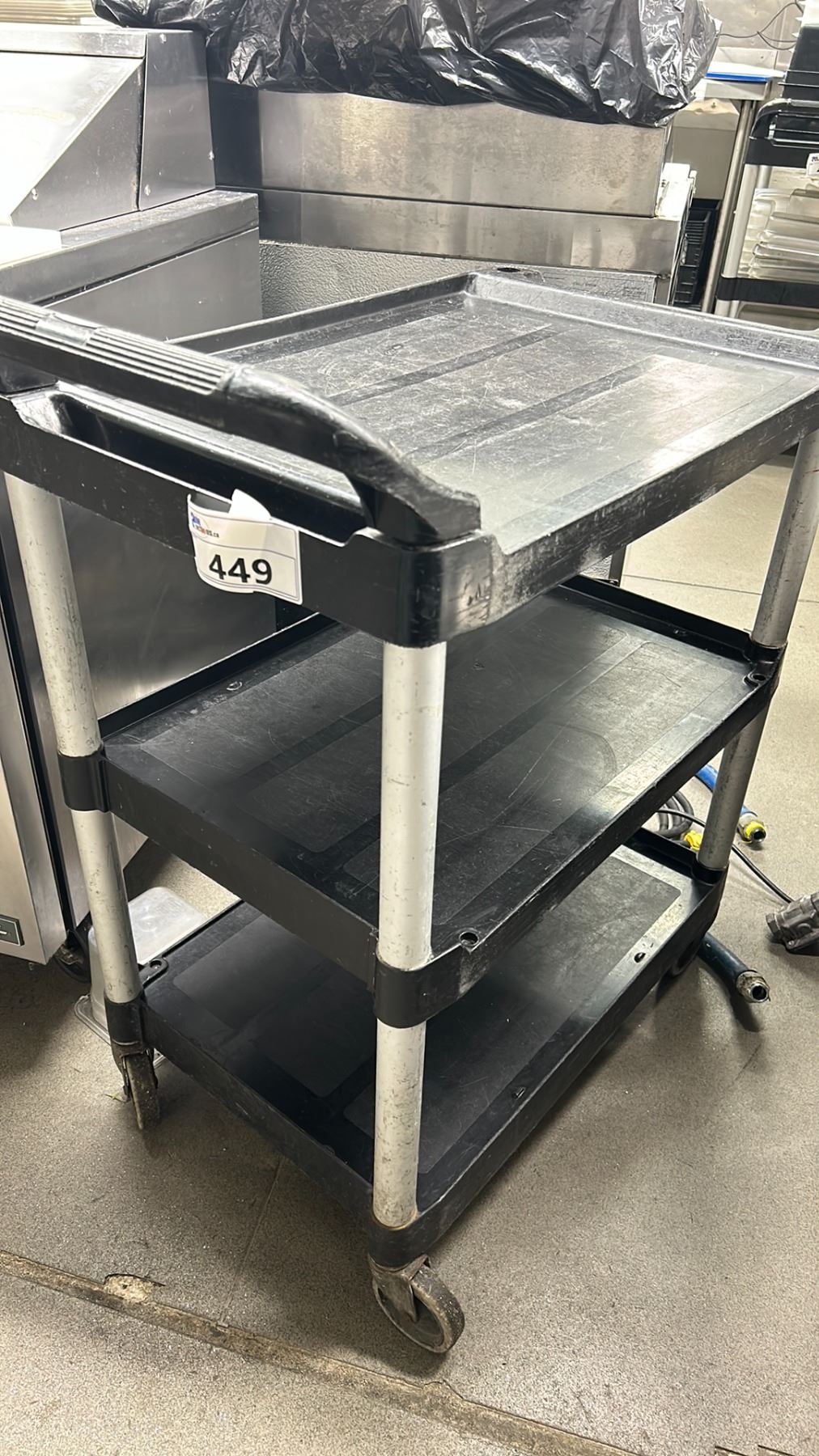 RUBBERMAID KITCHEN CART ON WHEELS. NO CONTENTS INCLUDED.