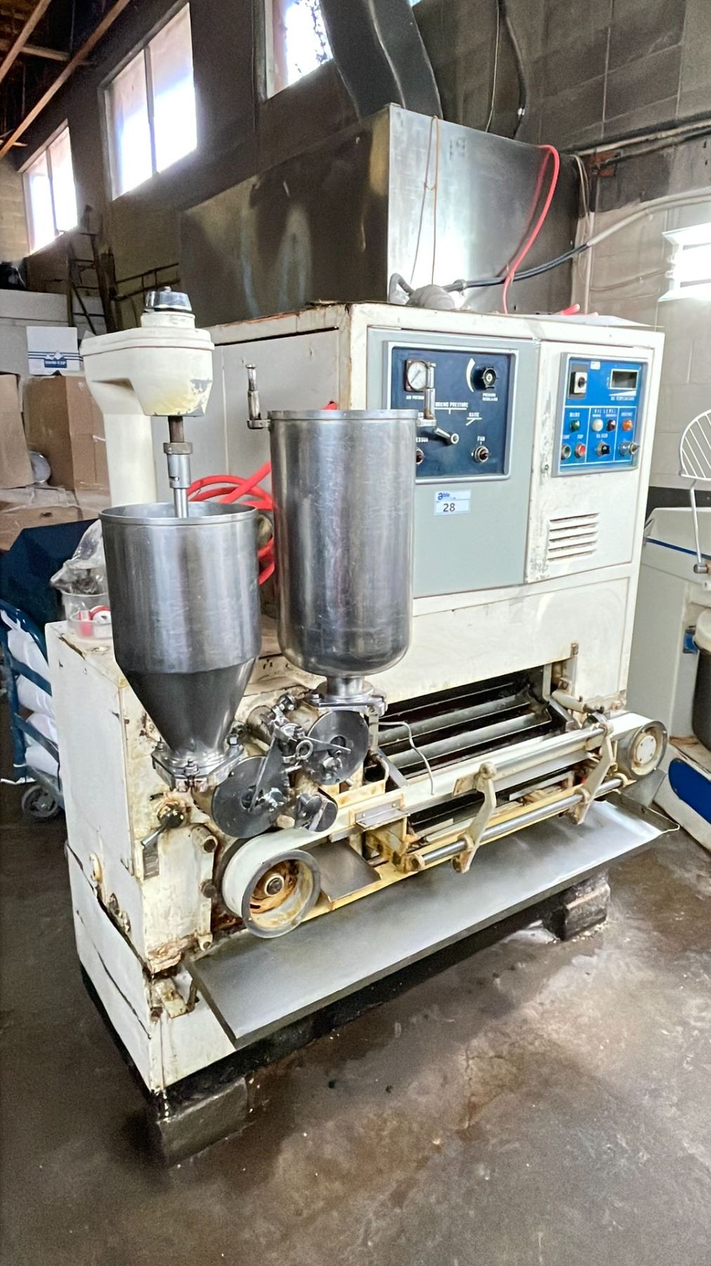 RUSSIAN TYPE AX 3 N 60 HZ COMMERCIAL PIROSHKI / PATTY FORMING MACHINE WITH CO EXTRUDER, DEEP FRYER 800 PCS PER HOUR OUTPUT WITH SECOND PARTS ONLY MACHINE FOR EXTRA PARTS *MUST HAVE PROPER TOOLS / TECHNICIAN TO DISMANTLE*