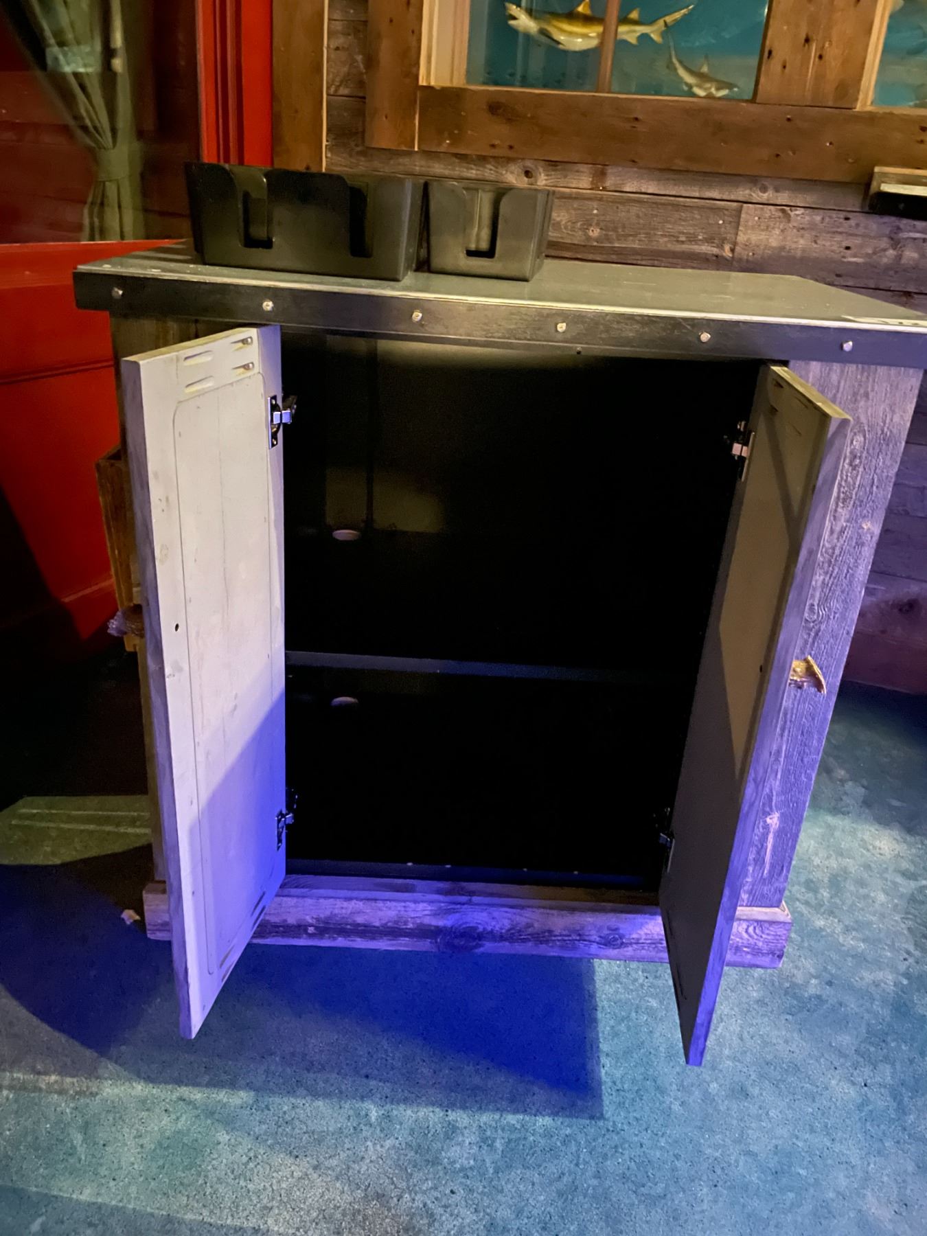 RUSTIC 38"W X 24"D X 36"H WOOD / METAL 2 DOOR HOSTESS STATION