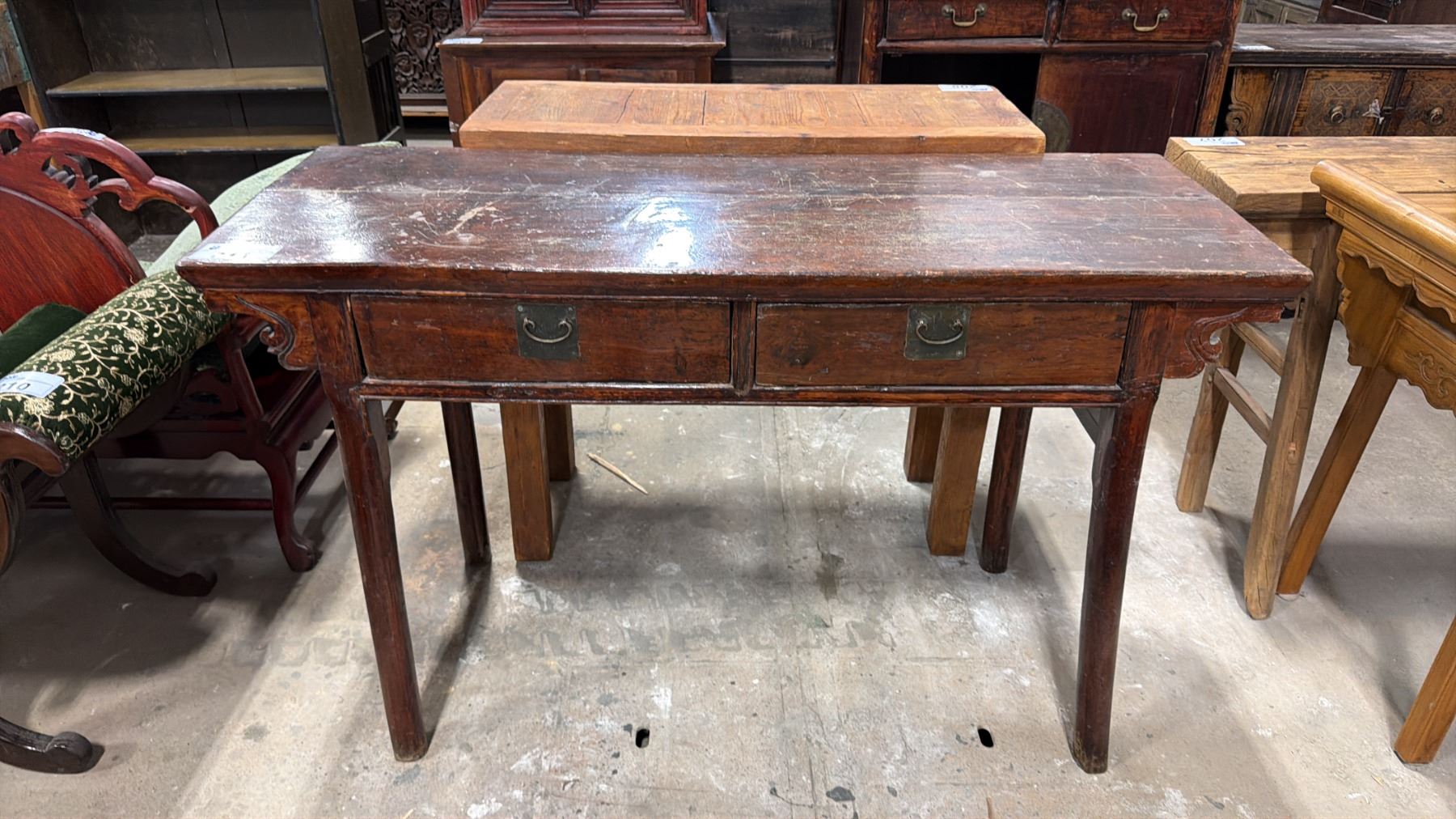 RUSTIC HARDWOOD CONSOLE TABLE WITH METAL ACCENTS