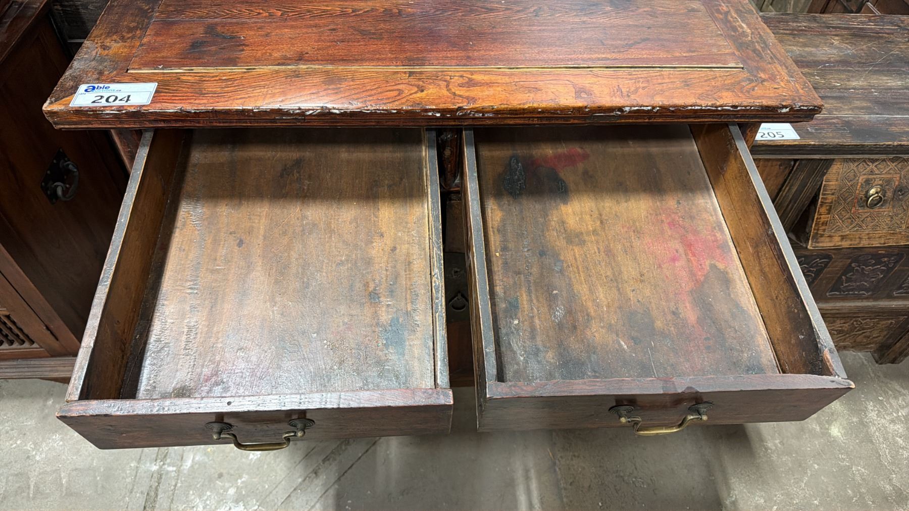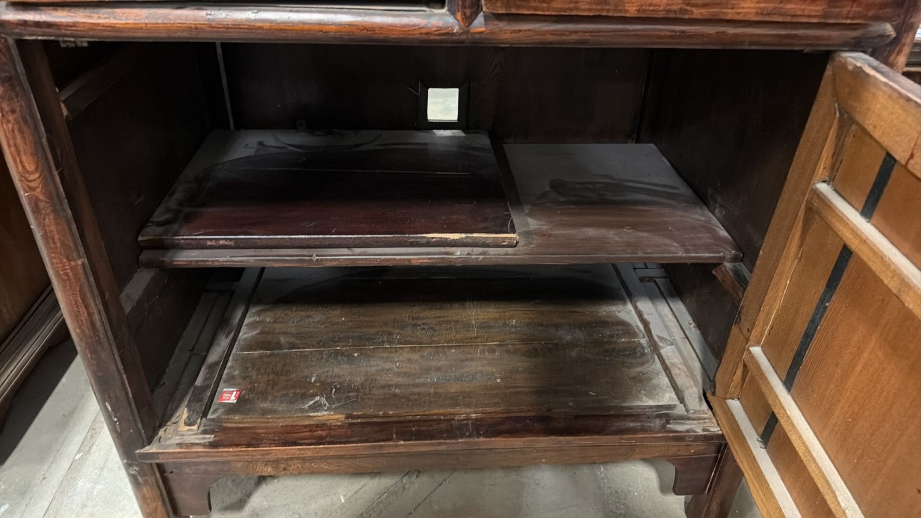 RUSTIC HARDWOOD ORIENTAL 2 DRAWER BUFFET CABINET *1 DOOR NEEDS REATTACHMENT*