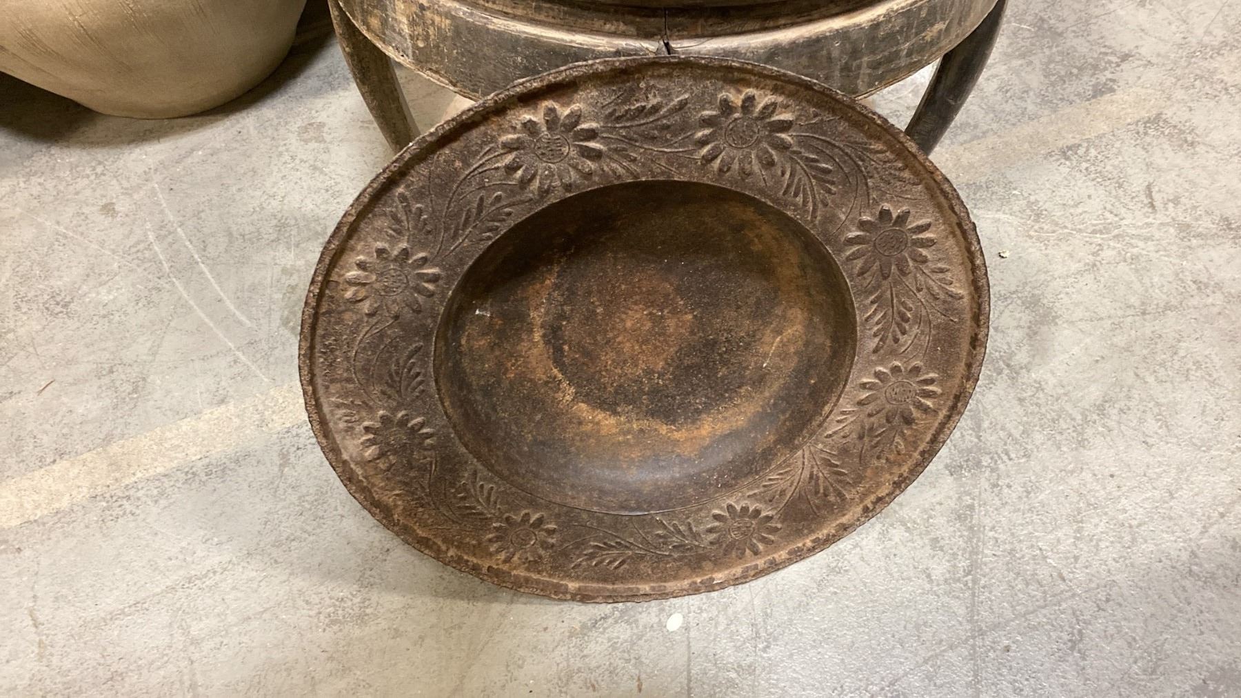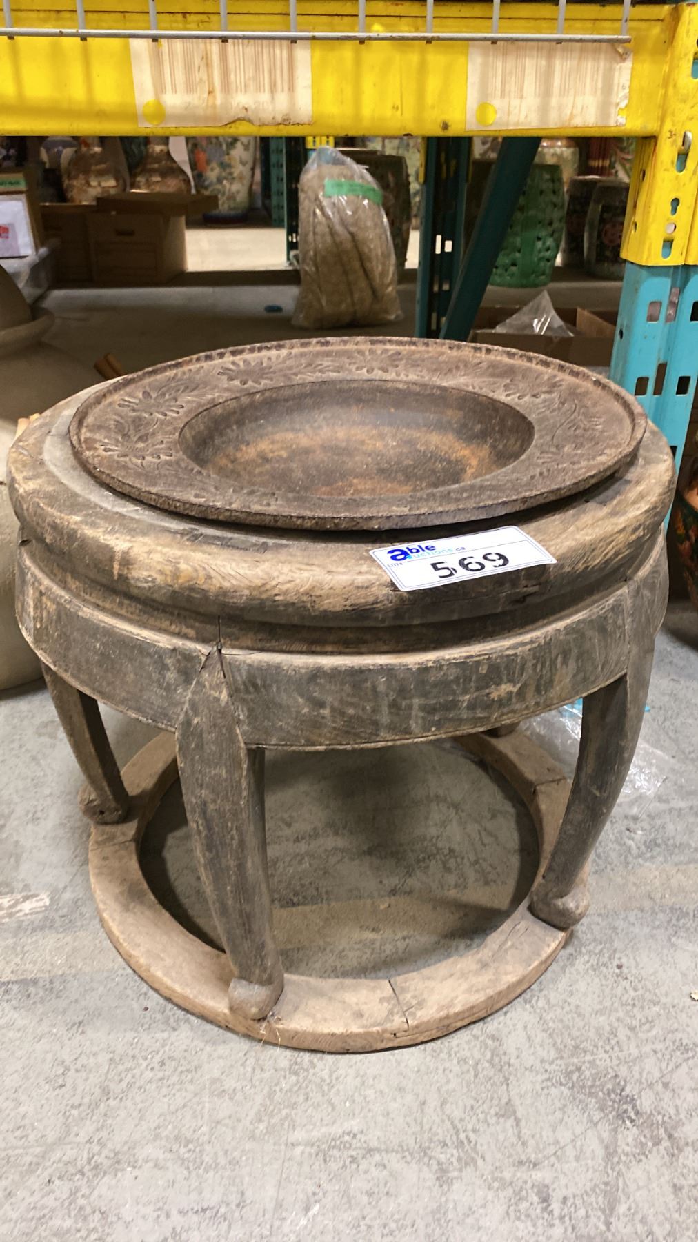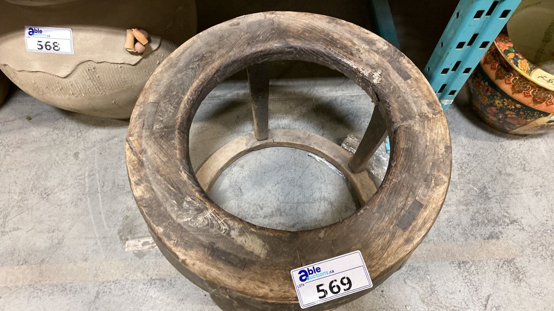 RUSTIC WOOD ROUND SAND WITH METAL DETACHABLE TOP/BOWL
