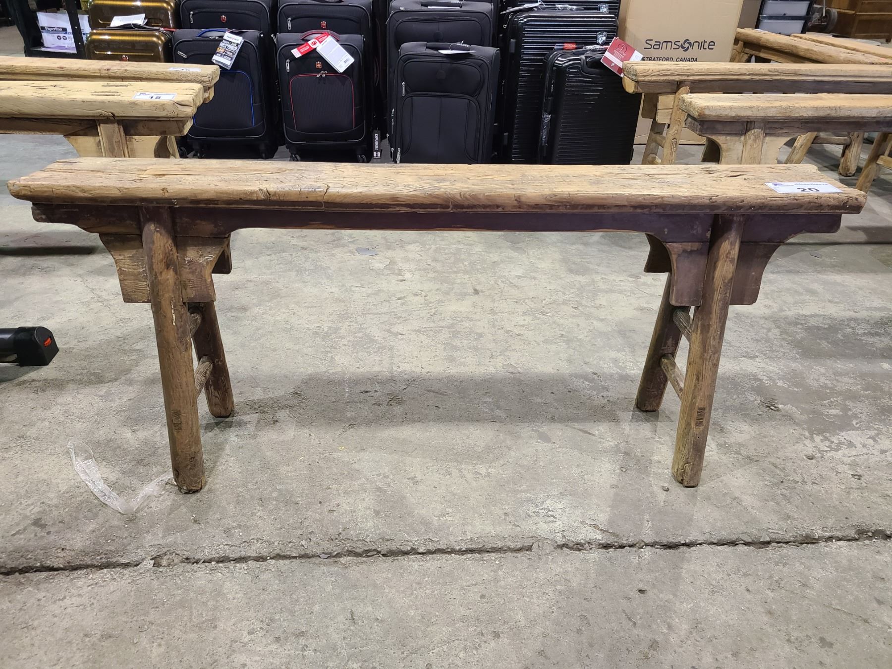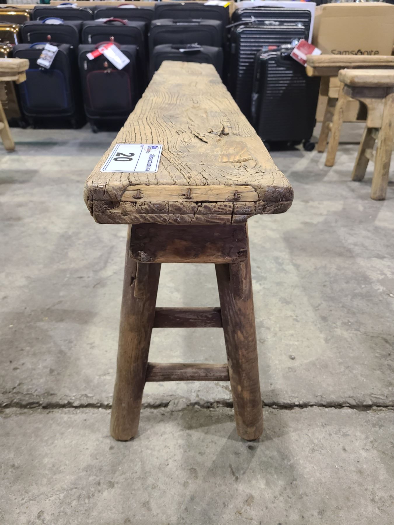 RUSTIC WOODEN BENCH (APPROX. H 20.5" W 6.5" L 53")