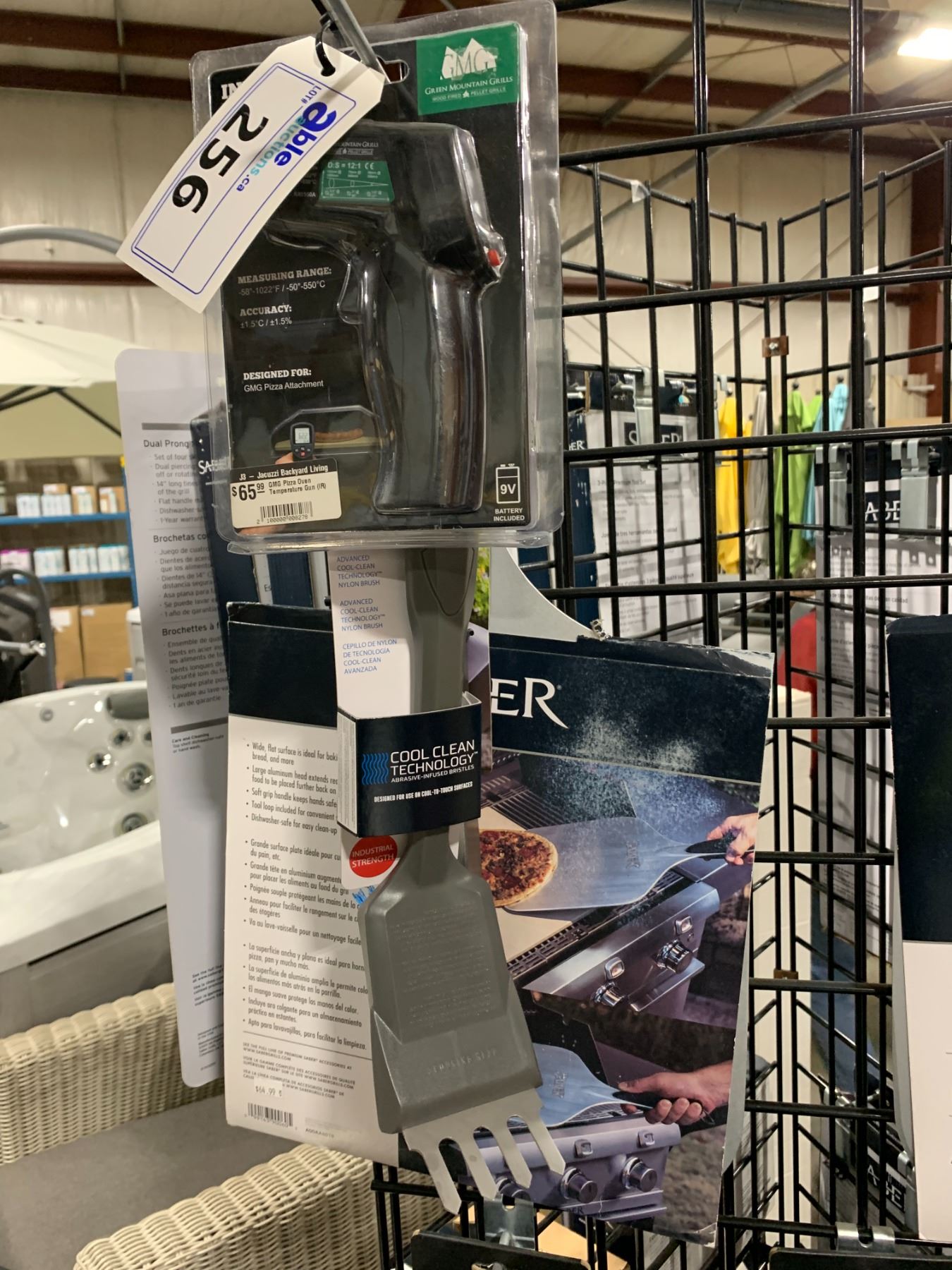 SABER ALUMINUM PIZZA PEEL, SABER INDUSTRIAL STRENGTH GRILL BRUSH, SABER XL LOCKING TONGS, & A GREEN MOUNTAIN GRILL INFRARED THERMOMETER