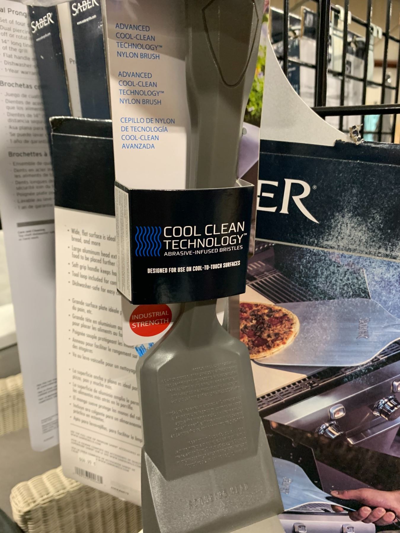 SABER ALUMINUM PIZZA PEEL, SABER INDUSTRIAL STRENGTH GRILL BRUSH, SABER XL LOCKING TONGS, & A GREEN