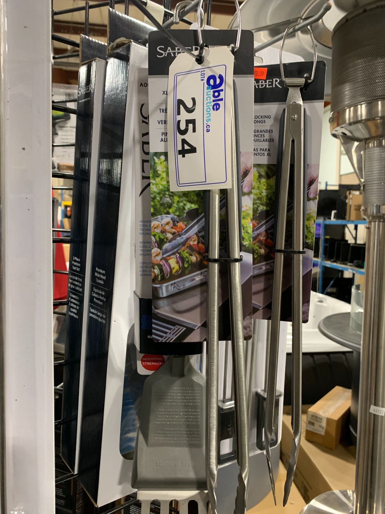 SABER LOT INCLUDING; 3 PC PREMIUM TOOL SET, PREMIUM WIDE HEAD SPATULA, INDUSTRIAL STRENGTH GRILL