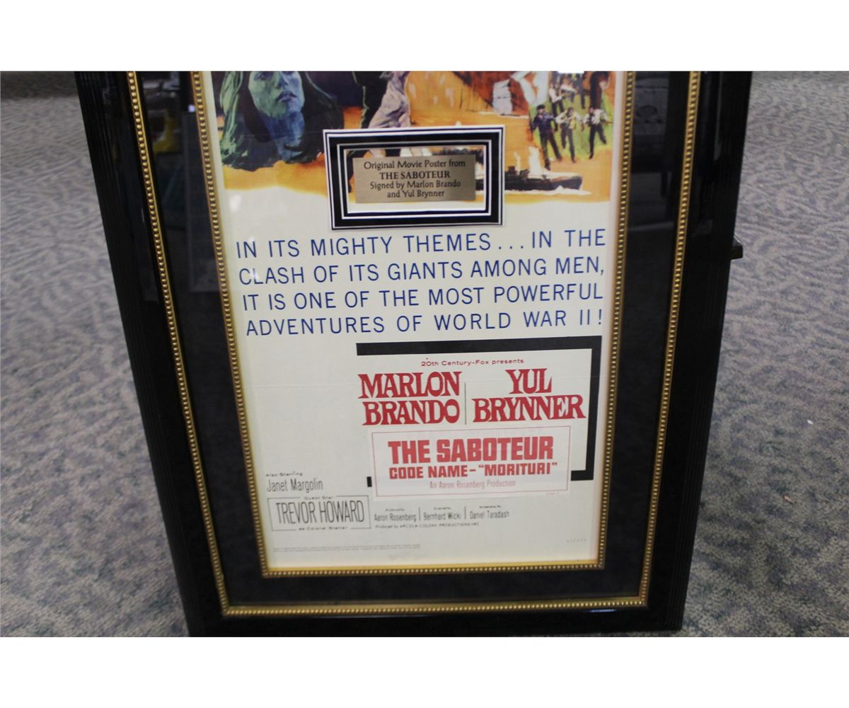 SABOTEUR, CUSTOM FRAMED 1/2 SHEET, SIGNED BY MARLON BRANO AND YUL BRYNNER