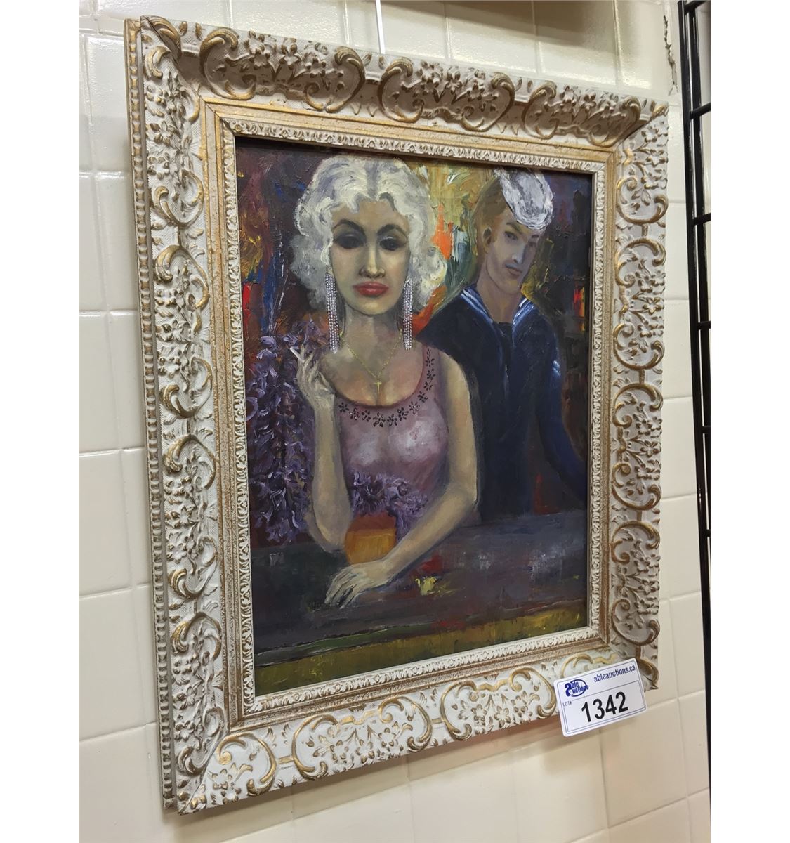 "SAILOR AND WOMAN AT BAR" OIL ON CANVAS UNSIGNED