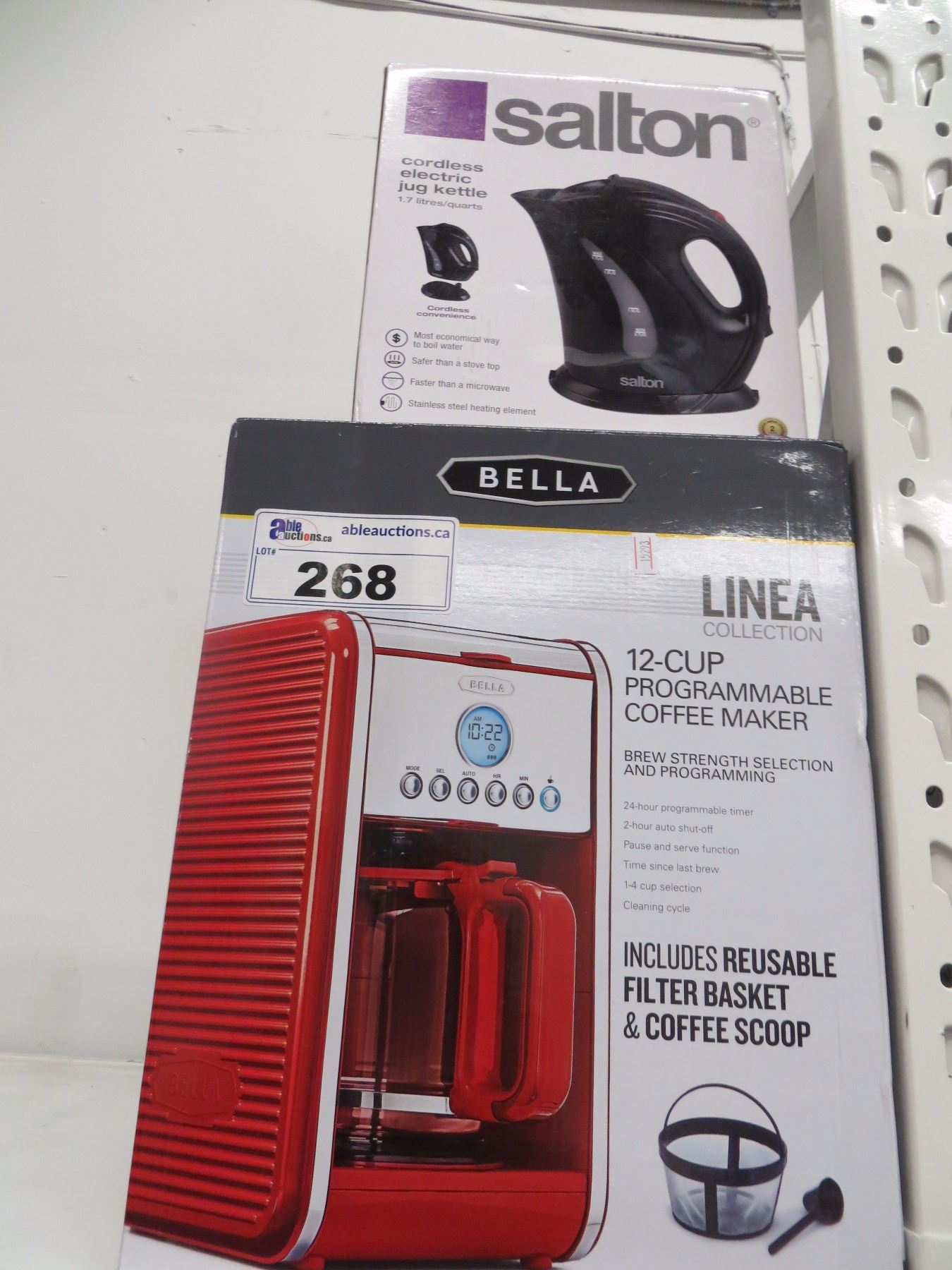 SALTON CORDLESS ELECTRIC KETTLE/BELLA LINEA 12-CUP PROGRAMMABLE COFFEE MAKER