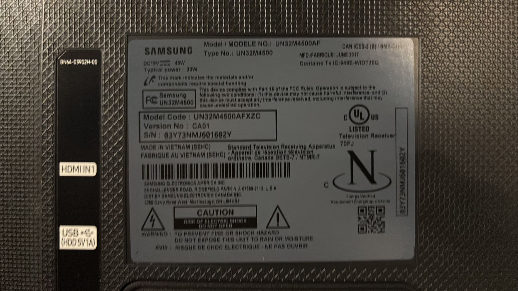 SAMSUNG 32" TELEVISION WITH POWER CORD *NO REMOTE*