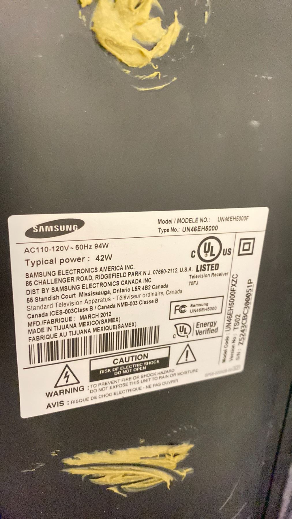 SAMSUNG 46" TV *NO BASE*