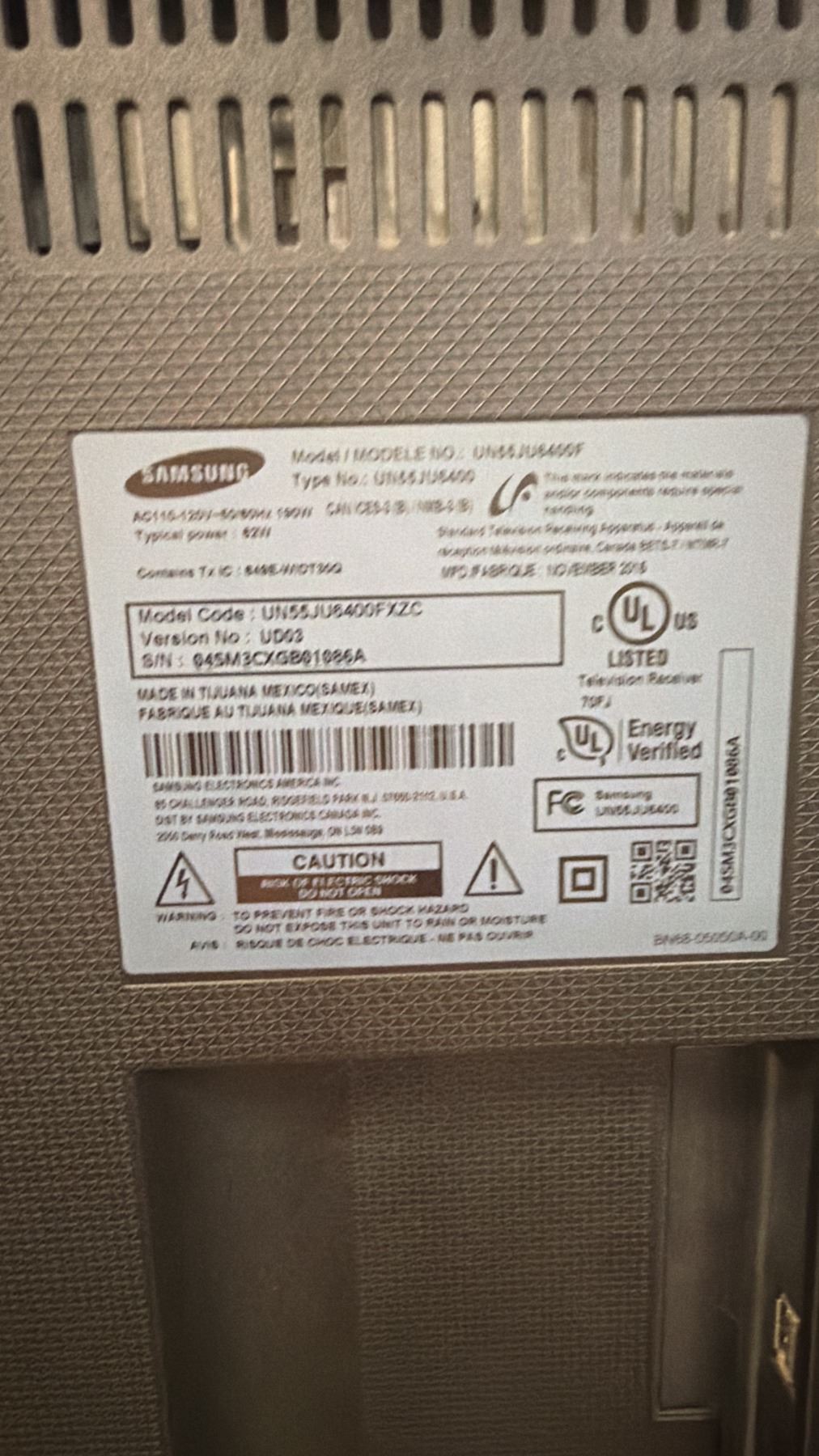 SAMSUNG 55" TV WITH WALL MOUNT ON PORTABLE TV STAND