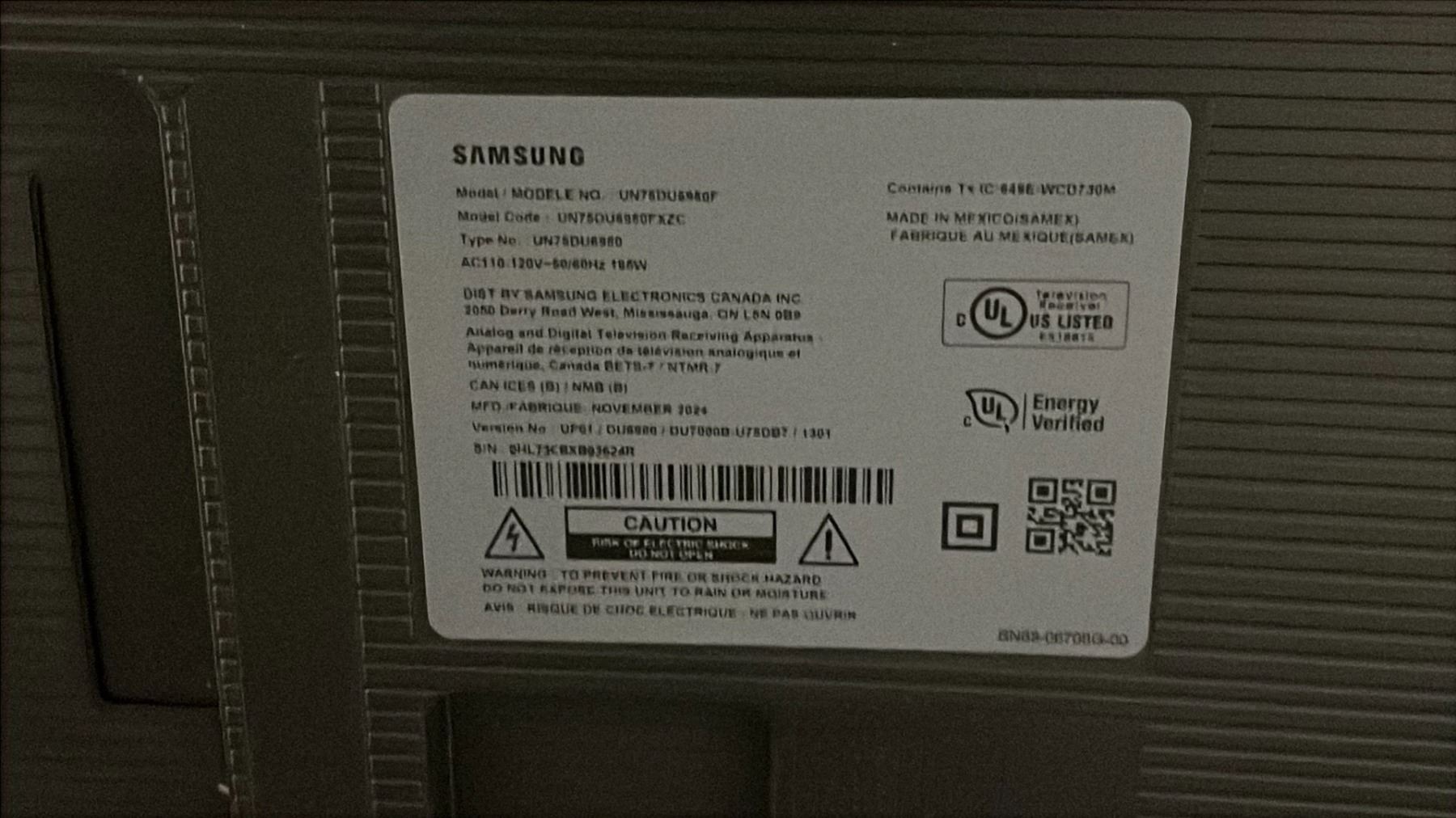 SAMSUNG 75" TELEVISION WITH REMOTE *DEAD PIXEL LINES/NO STAND*