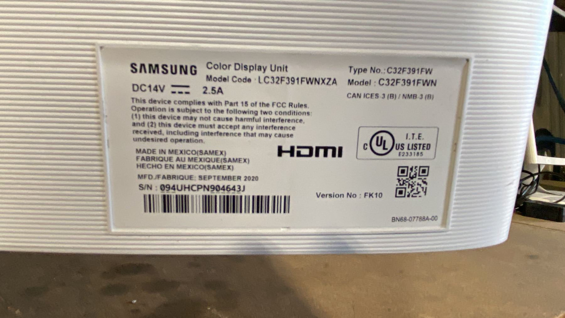 SAMSUNG C32F391FWN 32" CURVED COLOUR GAMING MONITOR WITH POWER ADAPTER & HDMI CABLE