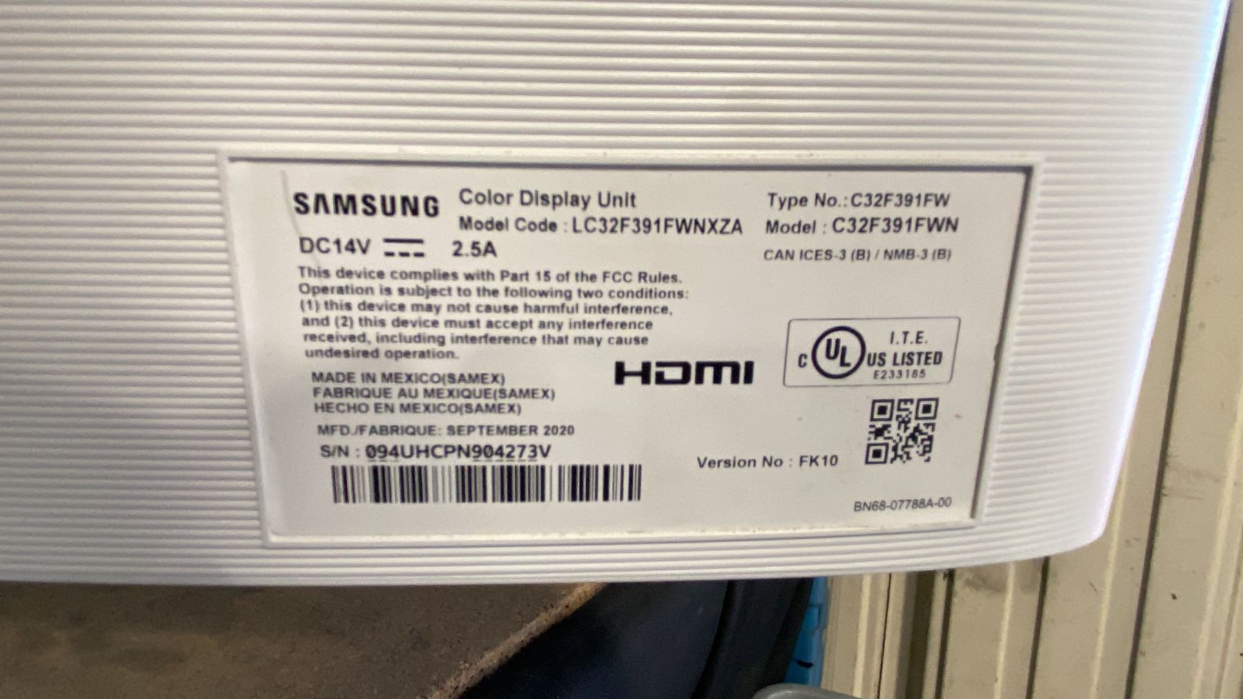 SAMSUNG C32F391FWN 32" CURVED COLOUR GAMING MONITOR WITH POWER ADAPTER & HDMI CABLE