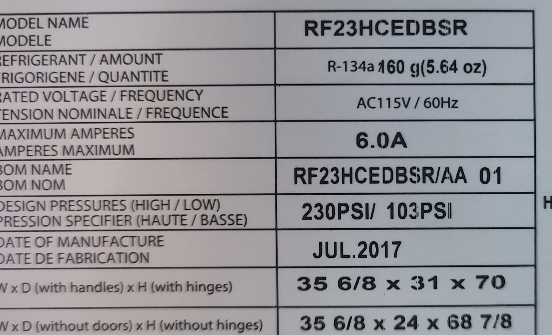 SAMSUNG FRENCH DOOR REFRIGERATOR MODEL RF23HCEDBSR