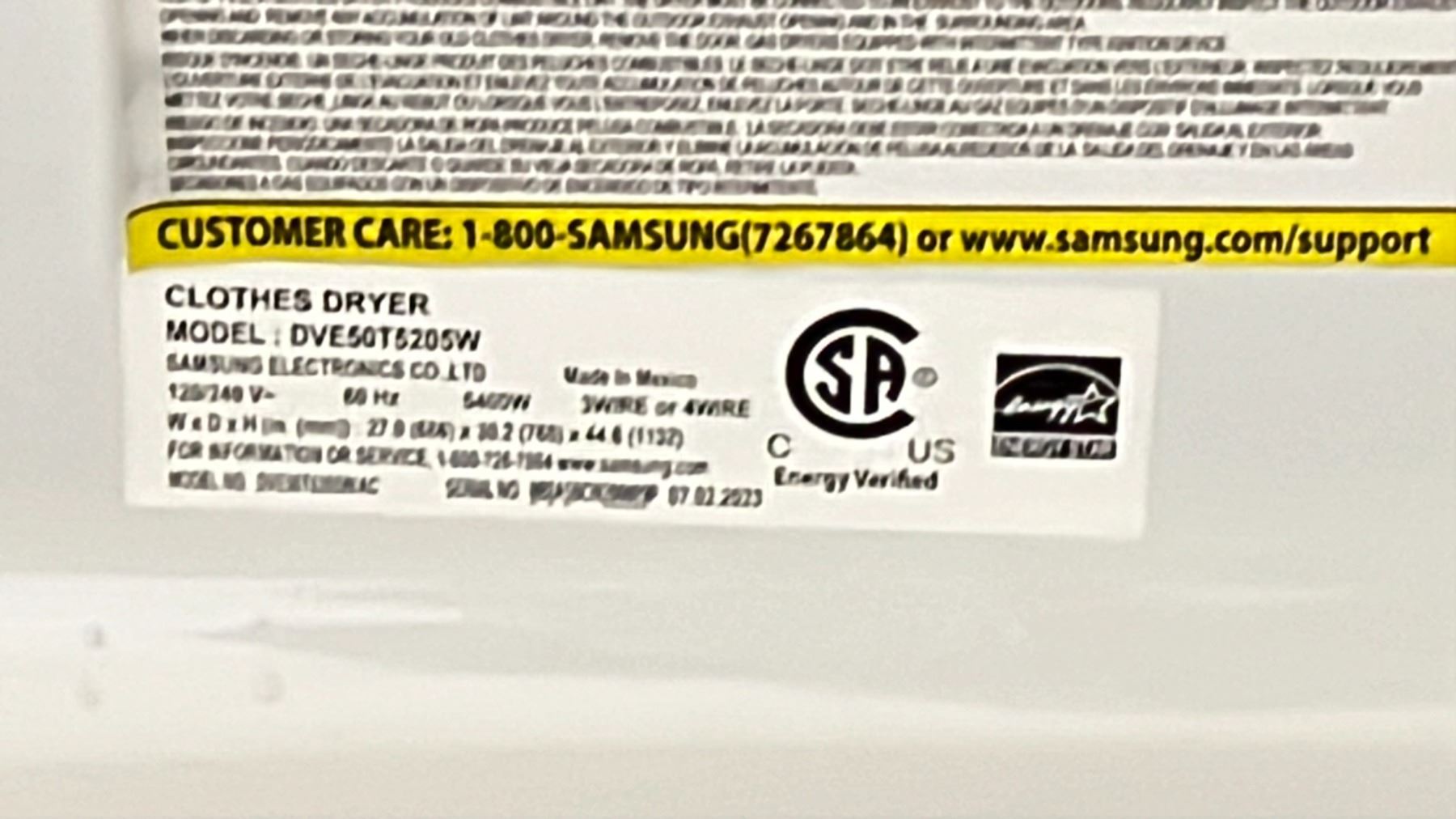 SAMSUNG FRONT LOAD DRYER