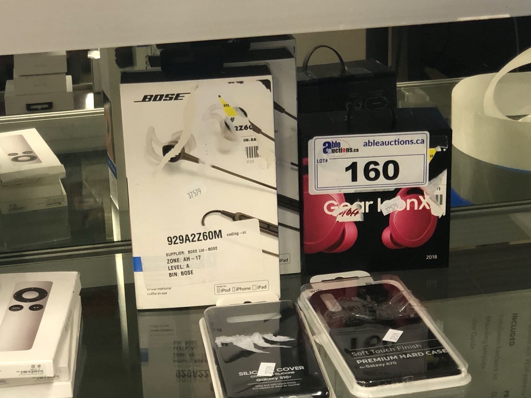 SAMSUNG GEAR ICONX WIRELESS HEADPHONES, 3 PAIRS OF BOSE IN EAR HEADPHONES AND 2 SAMSUNG PHONE CASES