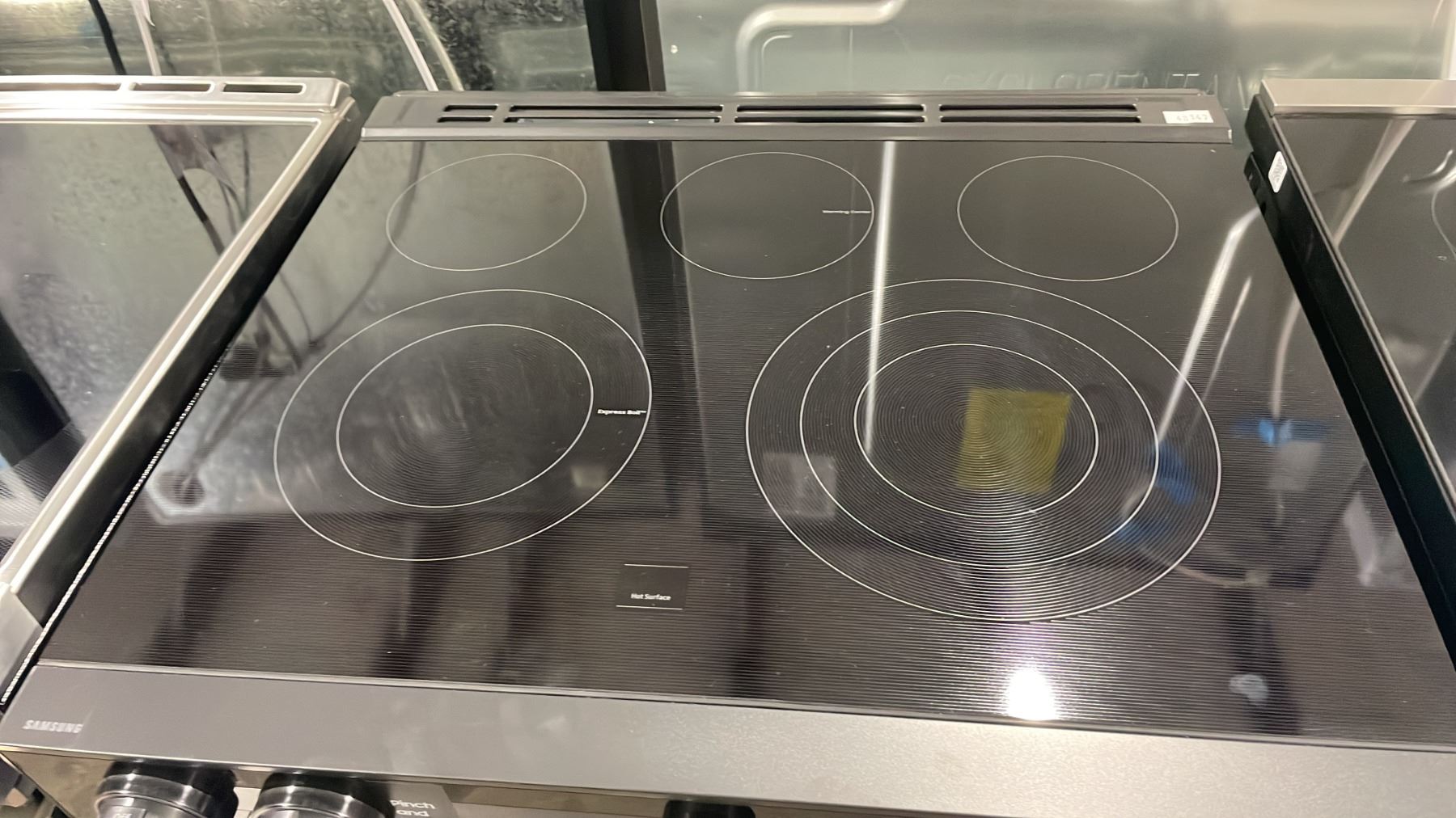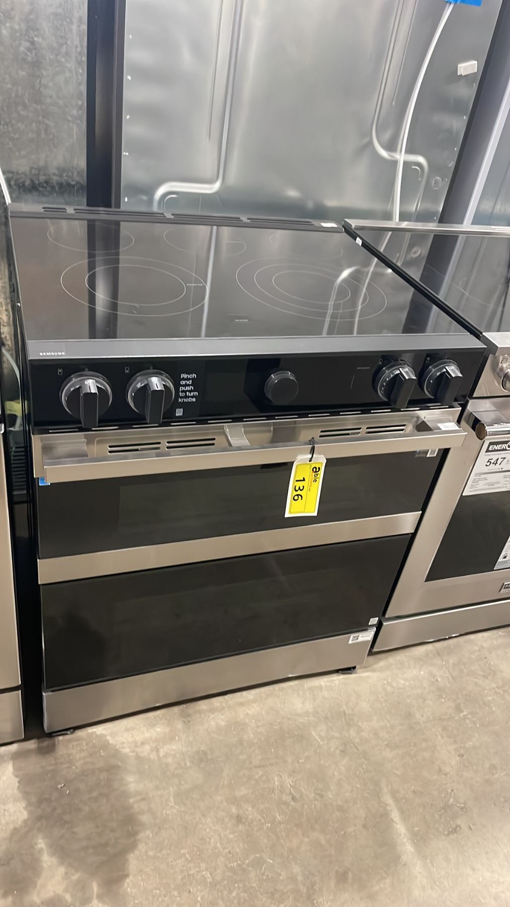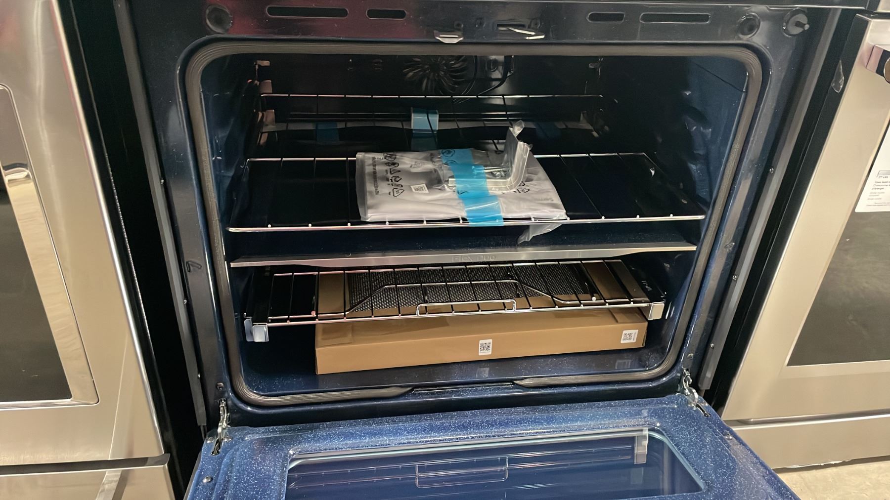 SAMSUNG MODEL NSE6DG8550SRAC. 30" SMART STAINLESS STEEL ELECTRIC SLIDE IN RANGE WITH FLEX DUO, WI-FI CONNECTIVITY, AIR FRY TECHNOLOGY, ILLUMINATED KNOBS SN 001L7CBY400256 RETAIL PRICE $2599.99