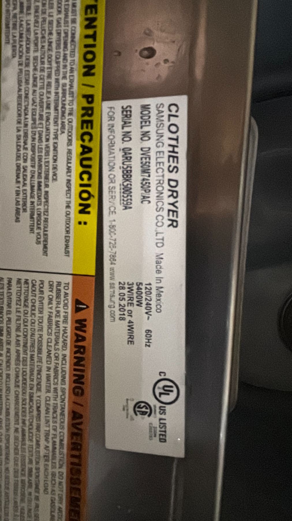 SAMSUNG MULTI STEAM FRONT ENTRY CLOTHES DRYER