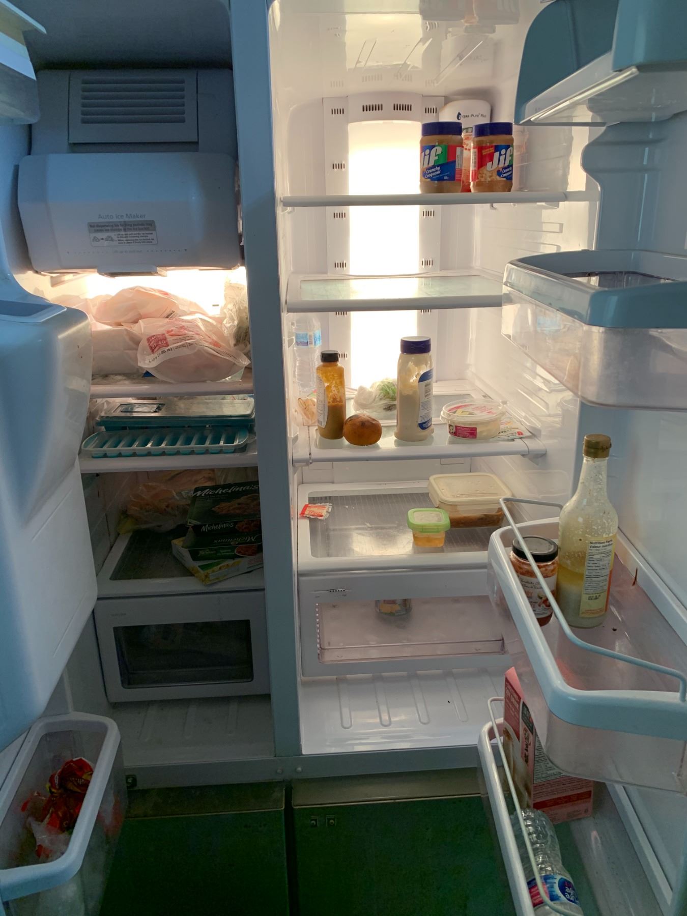 SAMSUNG STAINLESS STEEL 2 DOOR REFRIGERATOR *2 MISSING BOTTOM HANDLES*