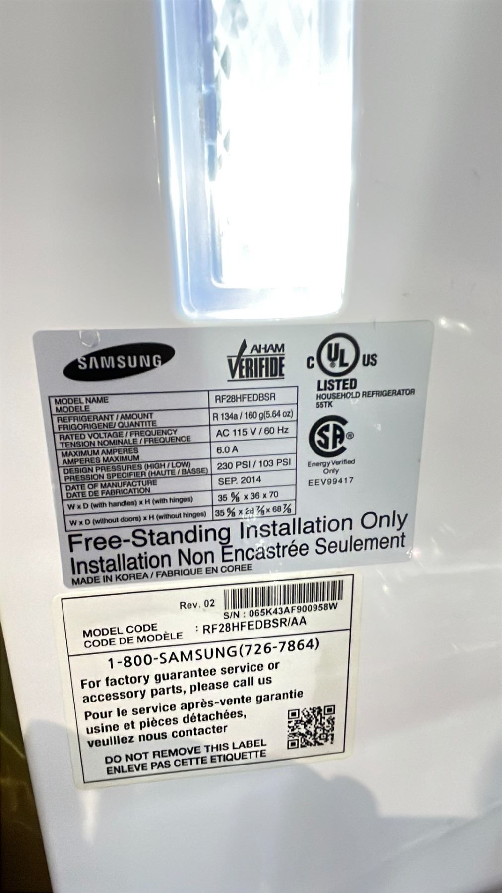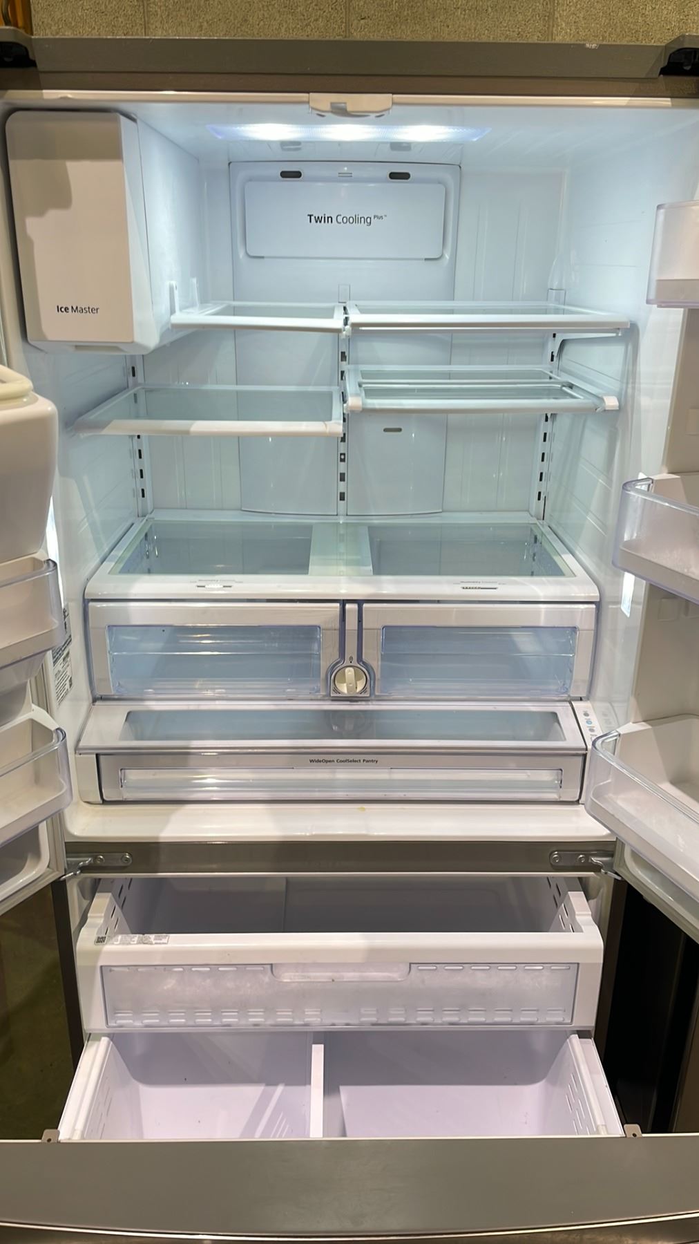 SAMSUNG STAINLESS STEEL FRENCH DOOR FRIDGE WITH ROLLOUT FREEZER & WATER/ICE DISPENSER 36"W