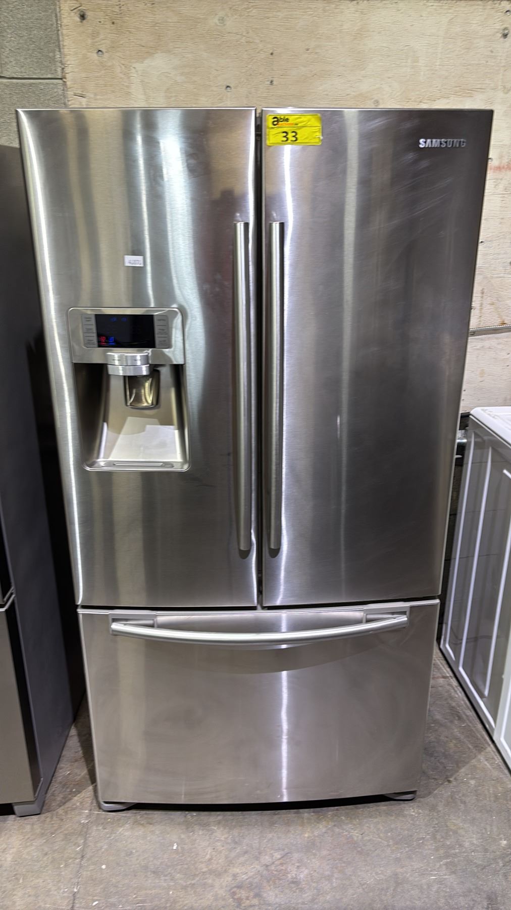 SAMSUNG STAINLESS STEEL FRENCH DOOR FRIDGE WITH ROLLOUT FREEZER & WATER/ICE DISPENSER 36"W