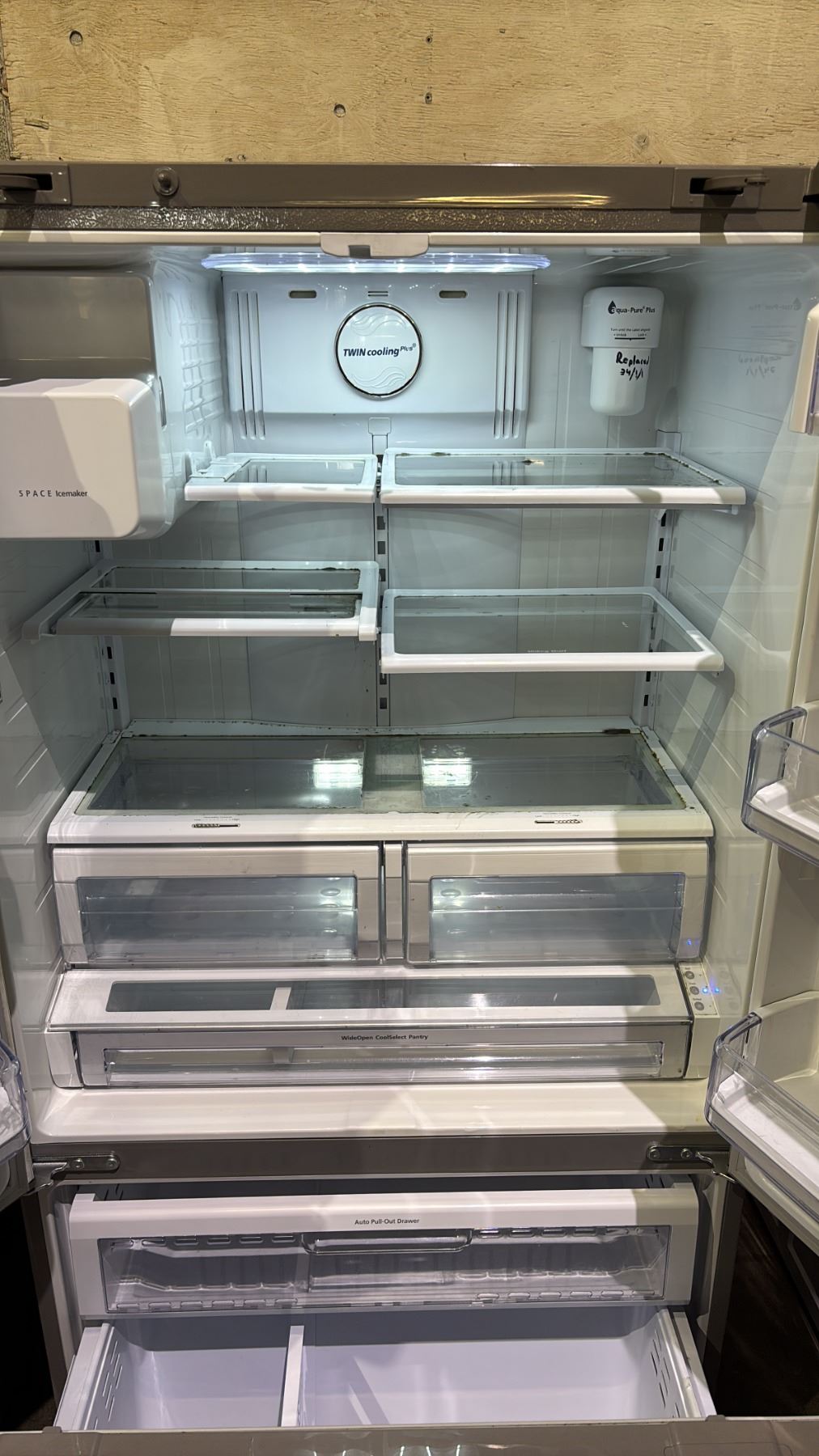 SAMSUNG STAINLESS STEEL FRENCH DOOR FRIDGE WITH ROLLOUT FREEZER & WATER/ICE DISPENSER 36"W MOLDY, FRIDGE DOES NOT COOL *PARTS & REPAIR*