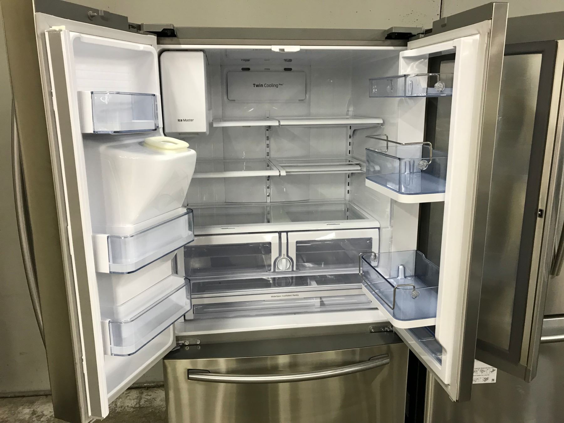 SAMSUNG STAINLESS STEEL FRENCH DOOR REFRIGERATOR WITH WATER/ICE DISPENSER MODEL RF28HDEDBSR