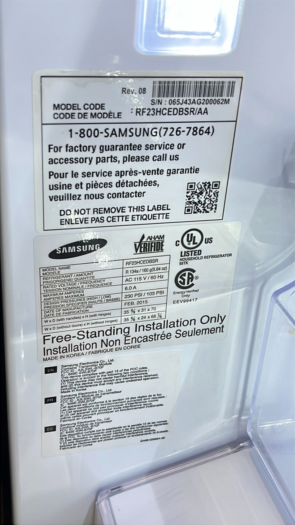 SAMSUNG STAINLESS STEEL RF23HCEDBSR 36"W REFRIGERATOR