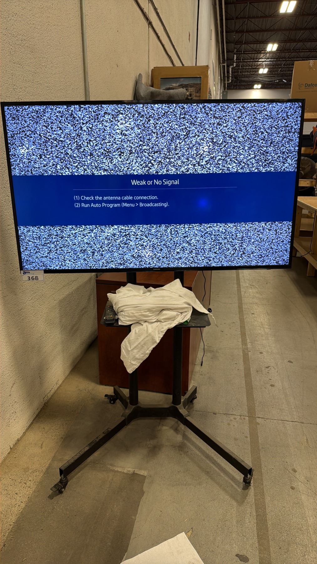 SAMSUNG UN55JU6400F, 55" LED SMART TV ON MOBILE STAND WITH REMOTE *SCREEN HAS BLEMISH*