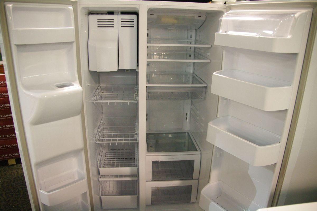 SAMSUNG WHITE DOUBLE DOOR FRIDGE/FREEZER WITH ICE MAKER & EXTERNAL DISPENSOR