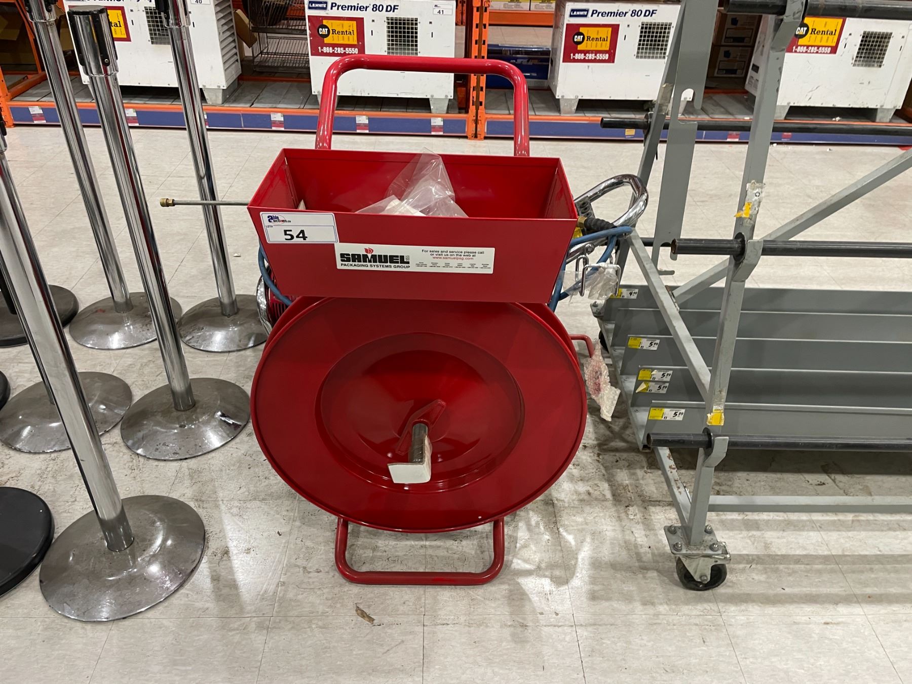 SAMUEL RED METAL MOBILE INDUSTRIAL BANDING CART ( TOOLING NOT INCLUDED )