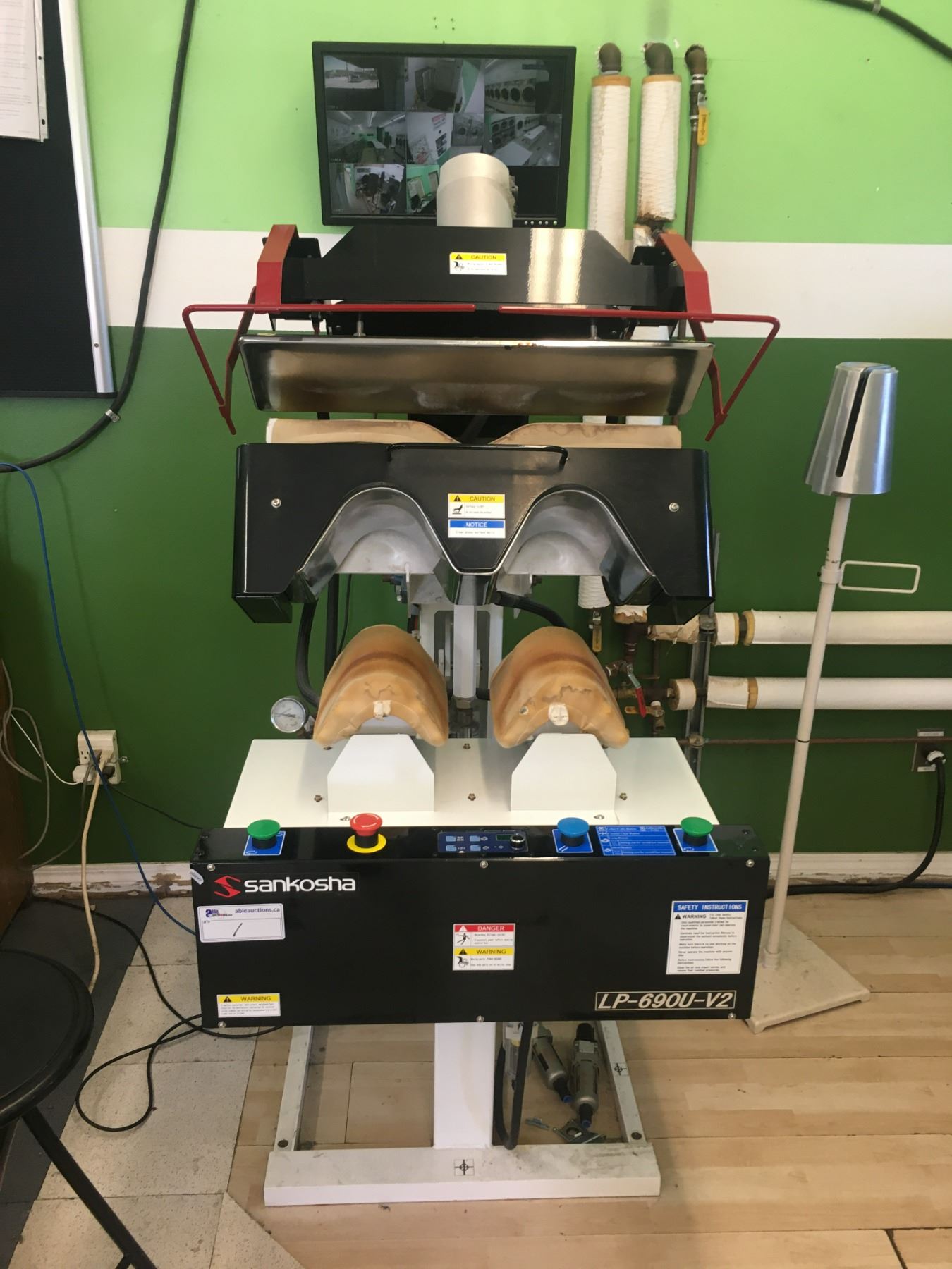 SANKOSHA MODEL LP-690U-V2 COMMERCIAL SINGLE TENSIONING COLLAR & CUFF STEAM PRESS ***REMOVAL & PROFESSIONAL DIS-CONNECTION IS THE RESPONSIBILITY OF BUYER***