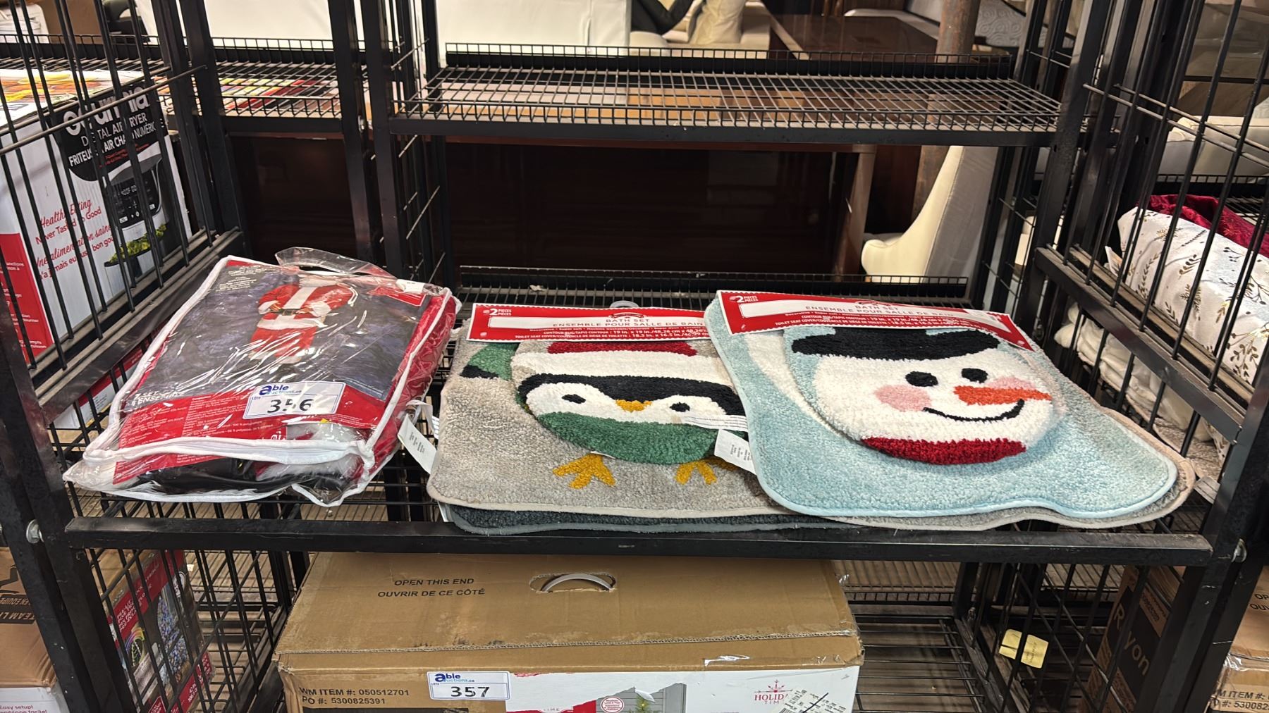 SANTA SUIT ( ONE SIZE FITS MOST ) & TWO CHRISTMAS BATHROOM SETS