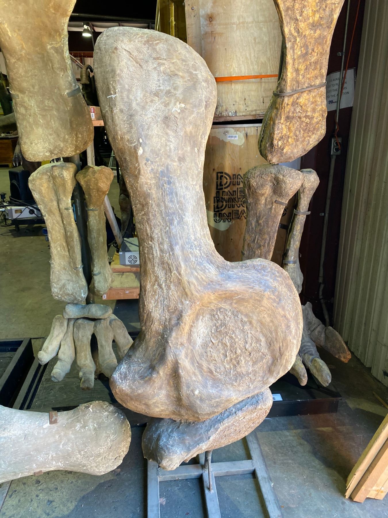 SAUROPOD SCAPULA BONES ON STEEL FRAME TOTAL MEASUREMENTS 25"W X 30"L X 71"H *REPRODUCTION*