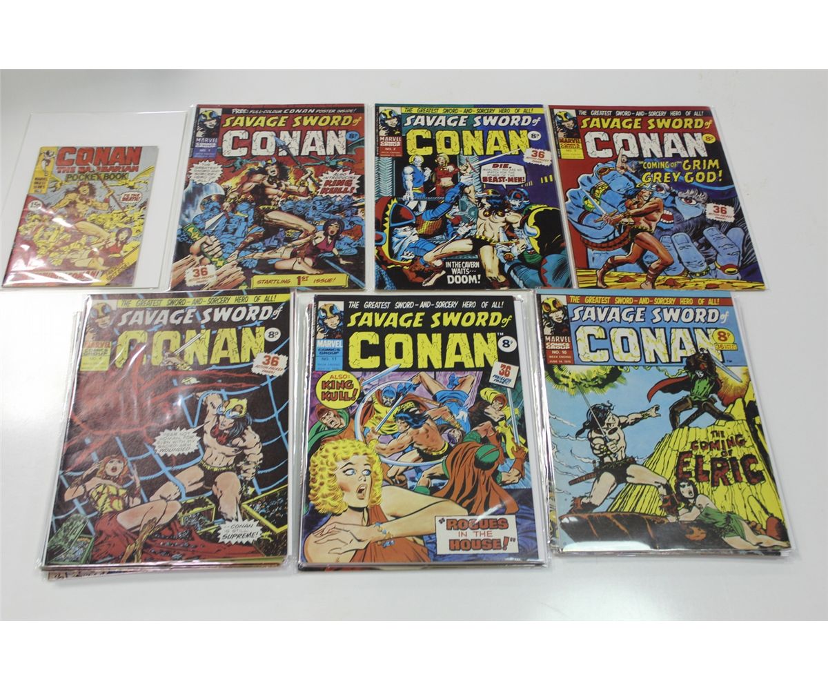 SAVAGE SWORD OF CONAN UK EDITION #1-18 CONSECUTIVE (1975) WEEKLY UK COMICS- HARD TO FIND IN NORTH AMERICA. ALSO INCLUDED IS CONAN THE BARBARIAN UK DIGEST #1. MID GRADE AVG, 19 BOOKS TOTAL, COOL ITEM!