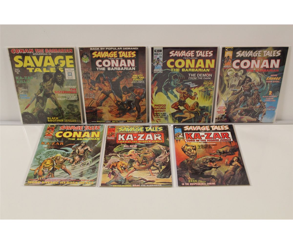 SAVAGE TALES #1-7 CONSECUTIVE (1971-74) THE 1ST 7 ISSUES FROM THE BRONZE MARVEL FANTASY MAG. . #1- ORIGIN & 1ST APP. MAN-THING. SOLID MID GRADE AVERAGE, GLOSSY, TIGHT & SUPPLE, VERY NICE RUN! 2013 OVERSTREET TOP END GUIDE VALUE OF $700