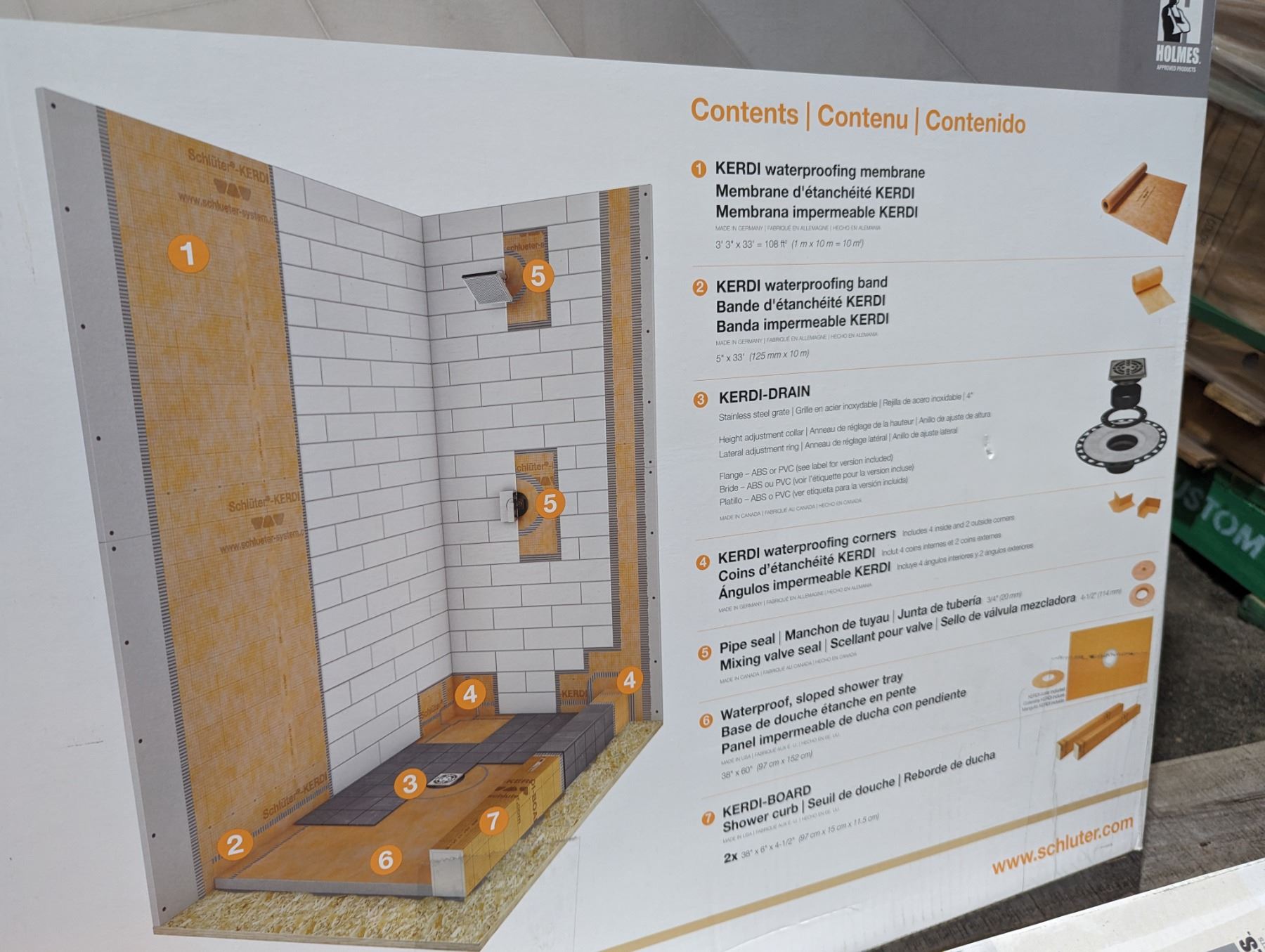 SCHLUTER-KERDI COMPLETE SHOWER KIT 38" X 60" (INCLUDES SLOPED SHOWER TRAY, KERDI DRAIN, WATERPROOF MEMBRANE ETC)