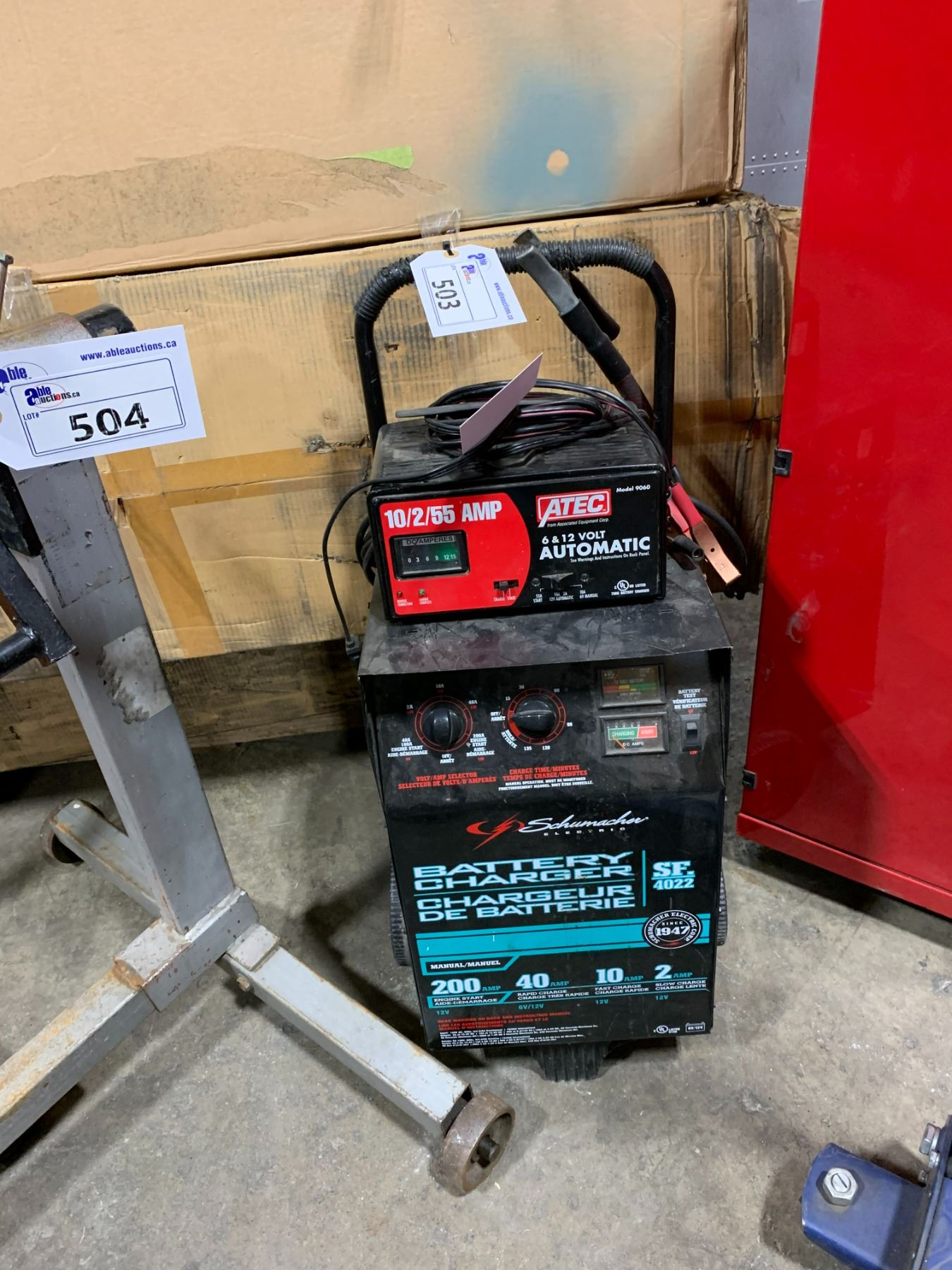 SCHUMACHER SF. 4022 HEAVY DUTY MOBILE ELECTRIC BATTERY CHARGER & ATEC 9060 6V / 12V AUTOMATIC ELECTRIC PORTABLE BATTERY CHARGER