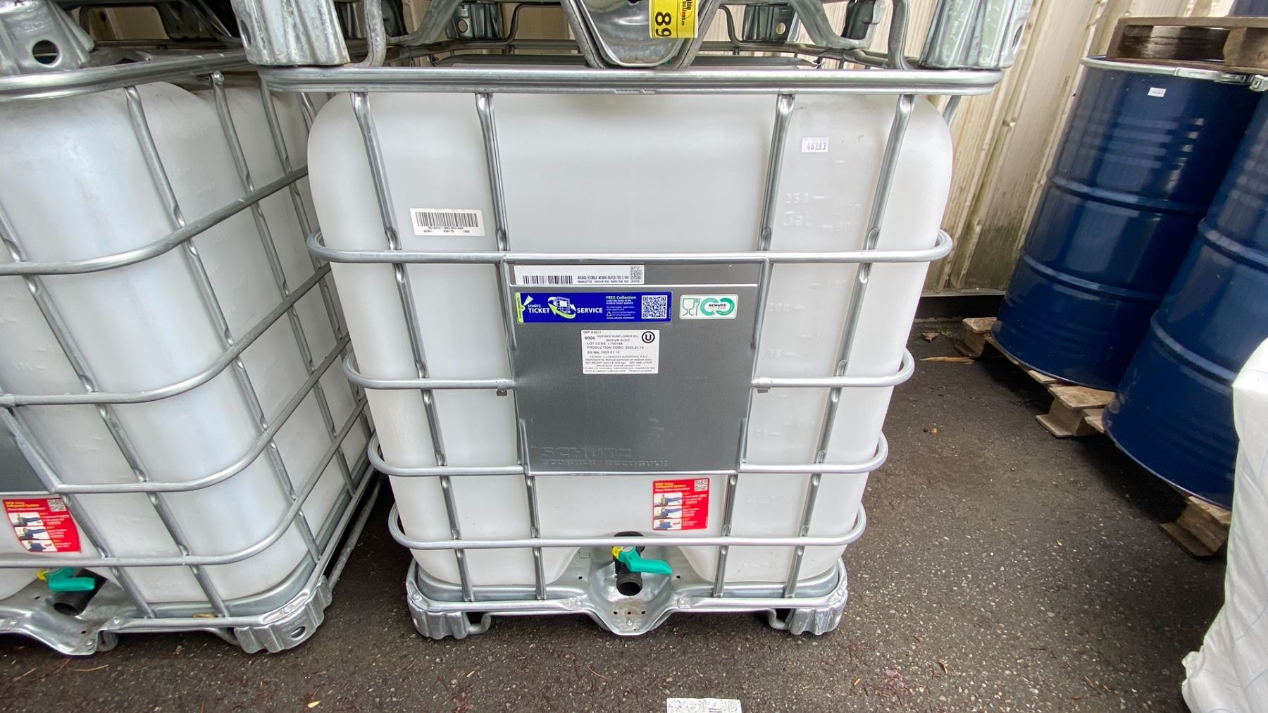 SCHUTZ 1000L PLASTIC COMMERCIAL METAL FRAMED LIQUID TRANSPORT PALLET