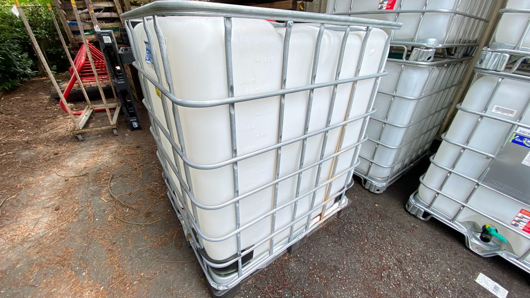 SCHUTZ 1000L PLASTIC COMMERCIAL METAL FRAMED LIQUID TRANSPORT PALLET