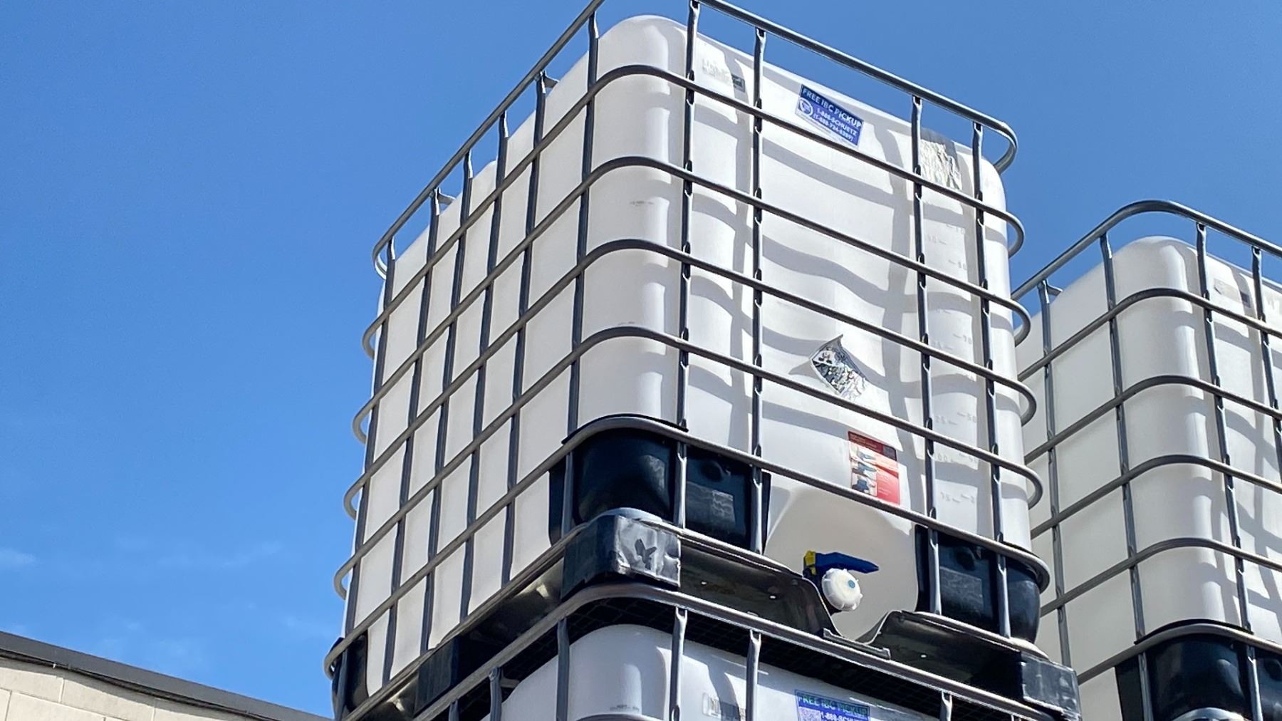 SCHUTZ 1200L PLASTIC COMMERCIAL METAL FRAMED LIQUID TRANSPORT PALLET