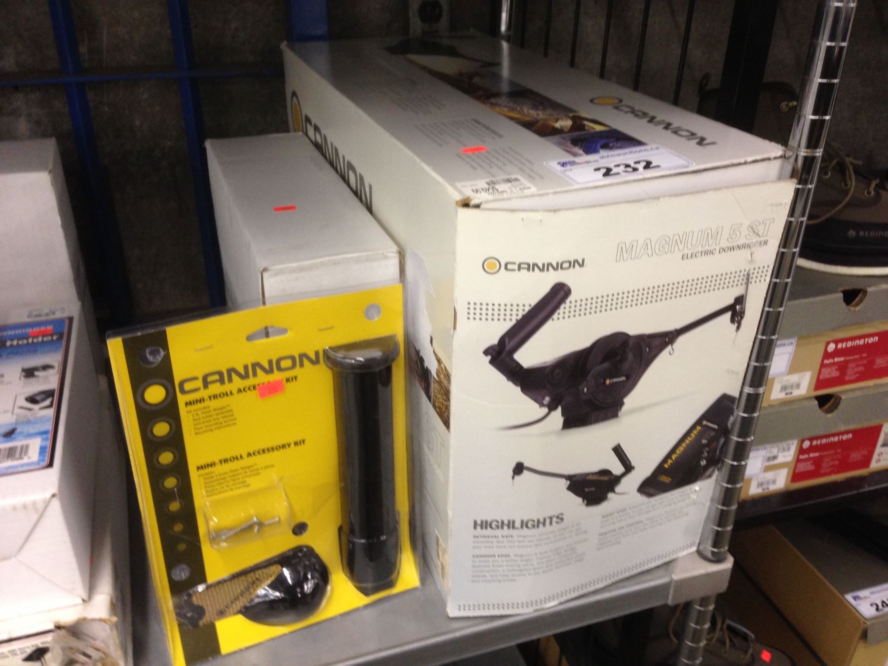 SCOTTY AND CANNON FISHING GEAR INC. CANNON MAGNUM 5 ST ELECTRIC DOWNRIGGER, MINI-TROLL KIT, AND SCOTTY DUAL ROD HOLDER