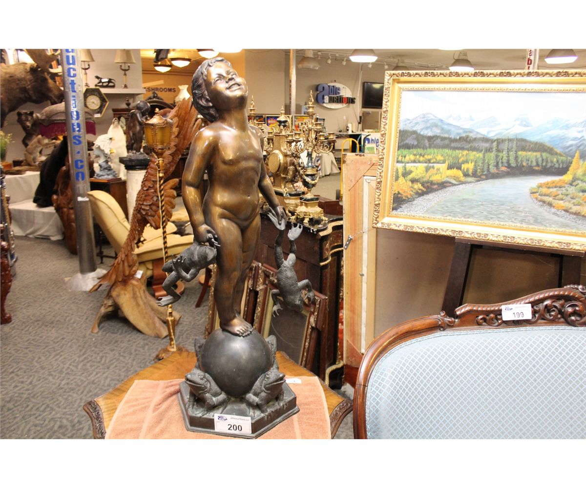 SCULPTURE OF YOUNG CHILD TOADS, BRONZE 39" HIGH