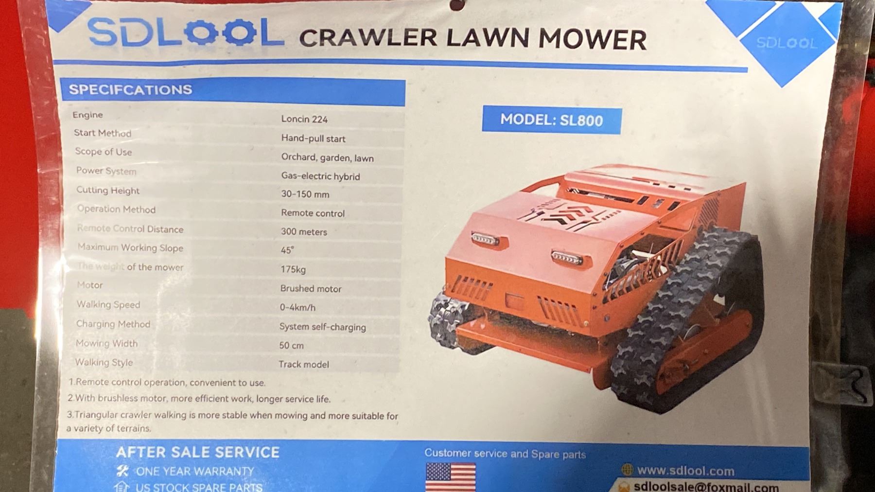 SDL800 REMOTE CONTROLLED GAS/ELECTRIC HYBRID POWERED CRAWLER LAWN MOWER WITH TRACKS *HAS MANUAL, HAS REMOTE*