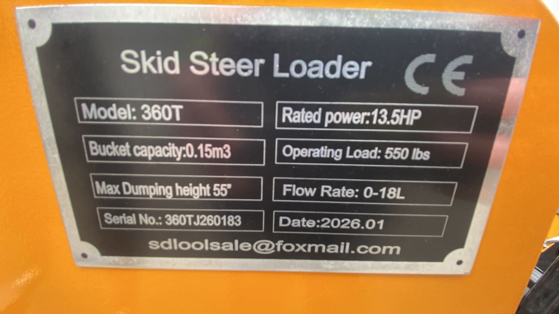 SDLOOL SL360T YELLOW 420CC GAS POWERED RUBBER TRACK STAND ON MINI SKID STEER LOADER WITH 42"W BUCKET *MEETS CANADIAN EMISSIONS CONTROL REGULATIONS*