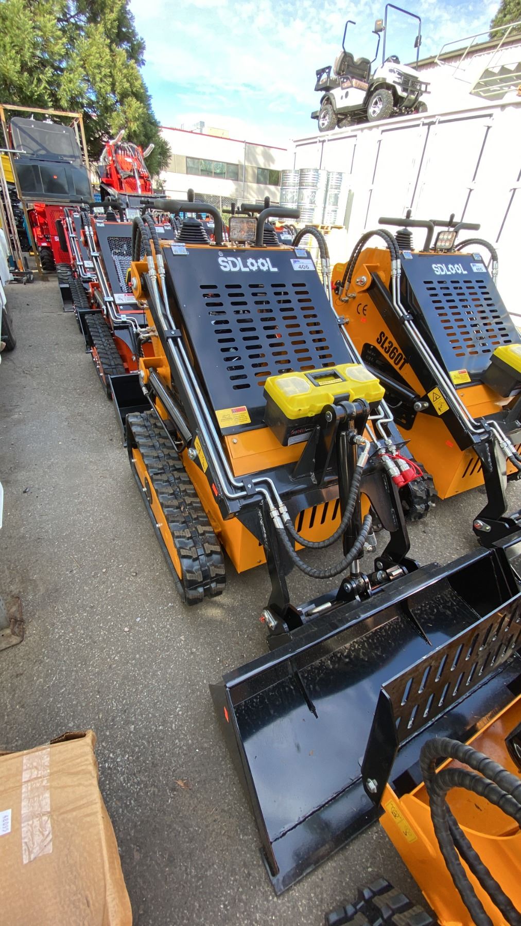SDLOOL SL360T YELLOW 420CC GAS POWERED RUBBER TRACK STAND ON MINI SKID STEER LOADER WITH 42"W