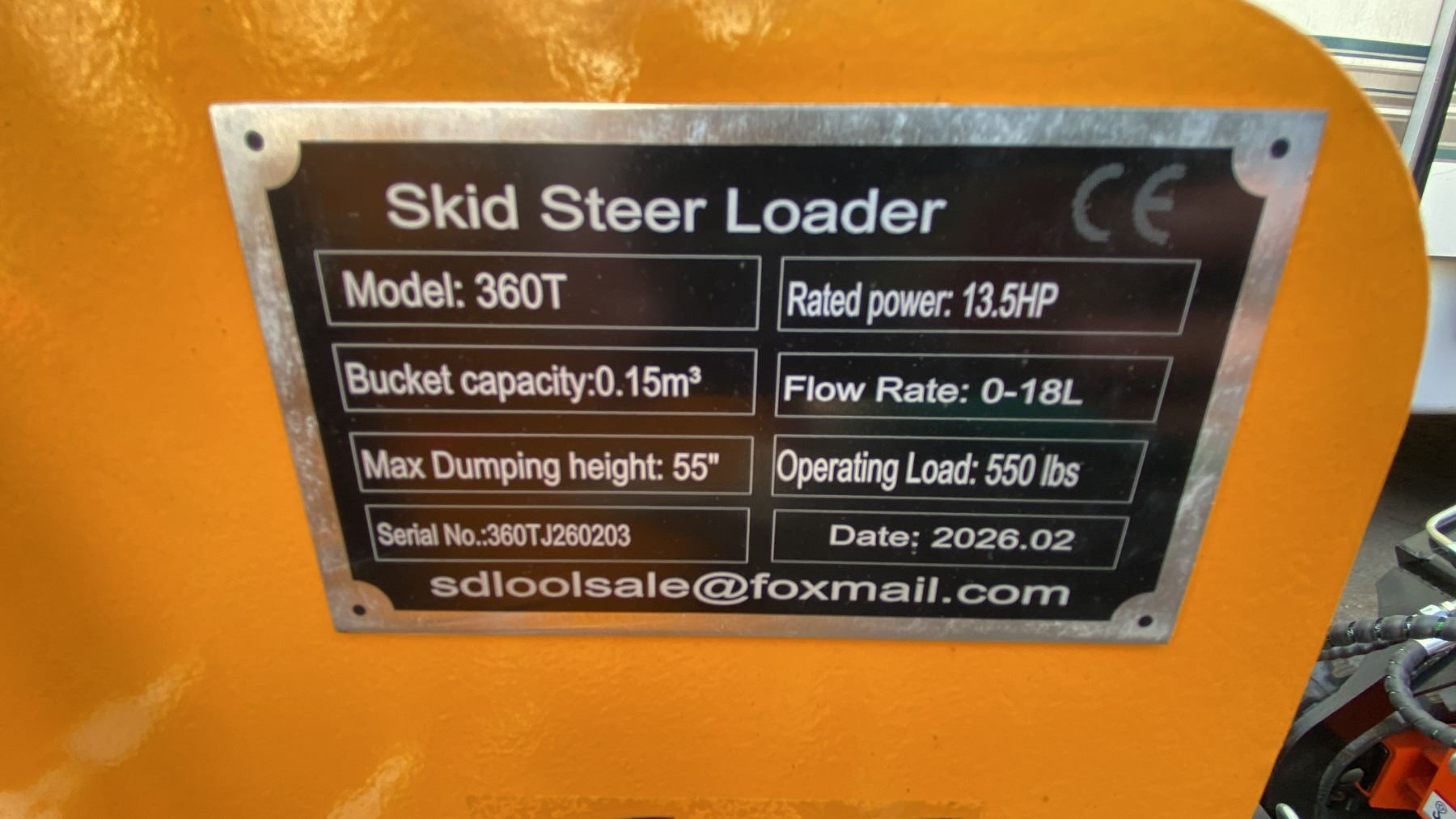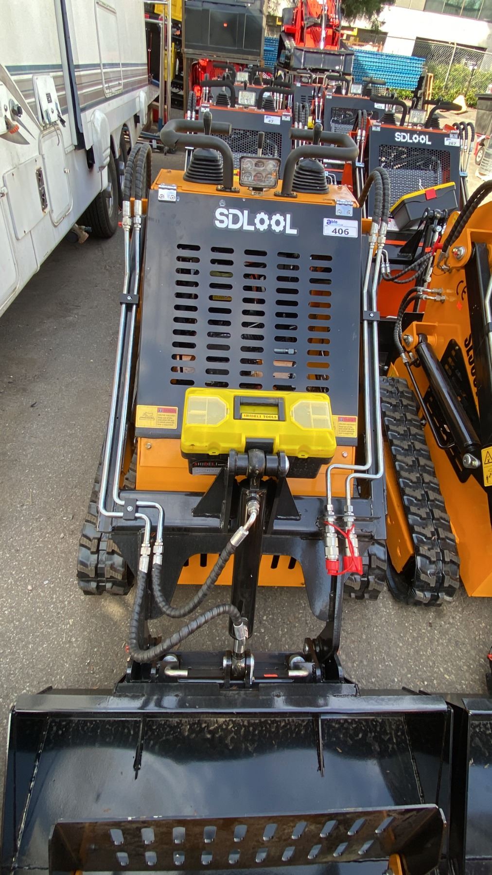 SDLOOL SL360T YELLOW 420CC GAS POWERED RUBBER TRACK STAND ON MINI SKID STEER LOADER WITH 42 W
