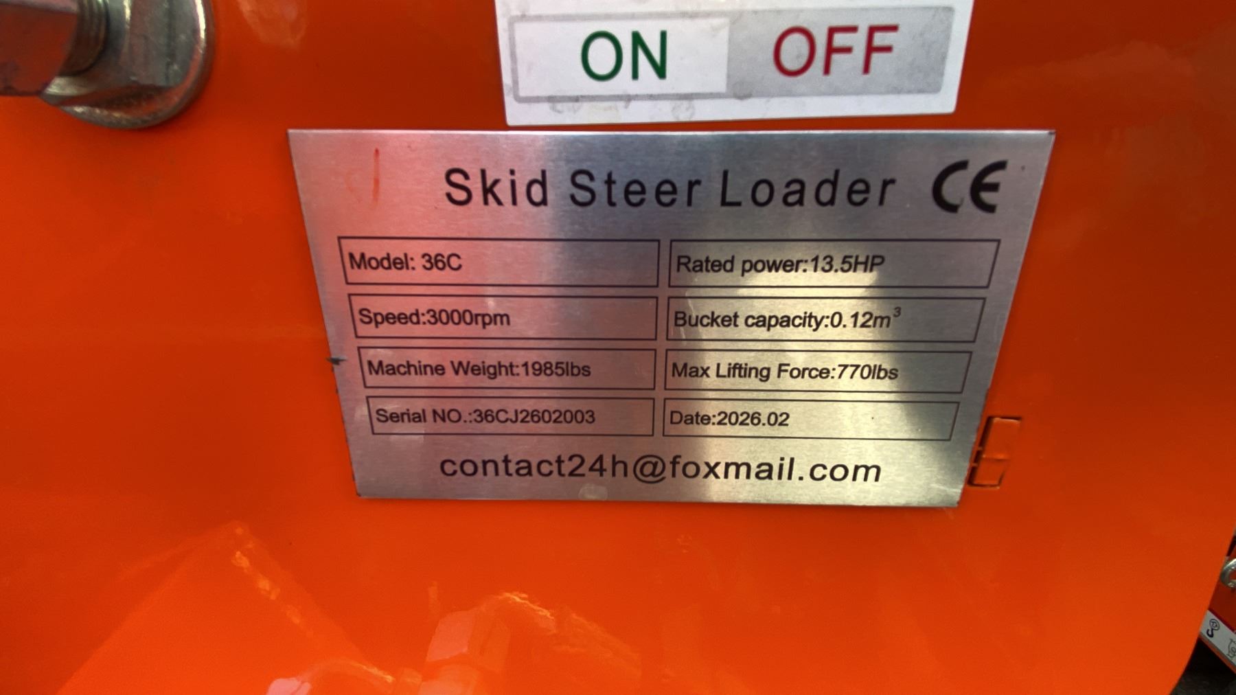 SDLOOL SL36C ORANGE 420CC GAS POWERED MINI STAND ON SKID STEER LOADER WITH 42"W BUCKET *MEETS CANADIAN EMISSIONS CONTROL REGULATIONS*